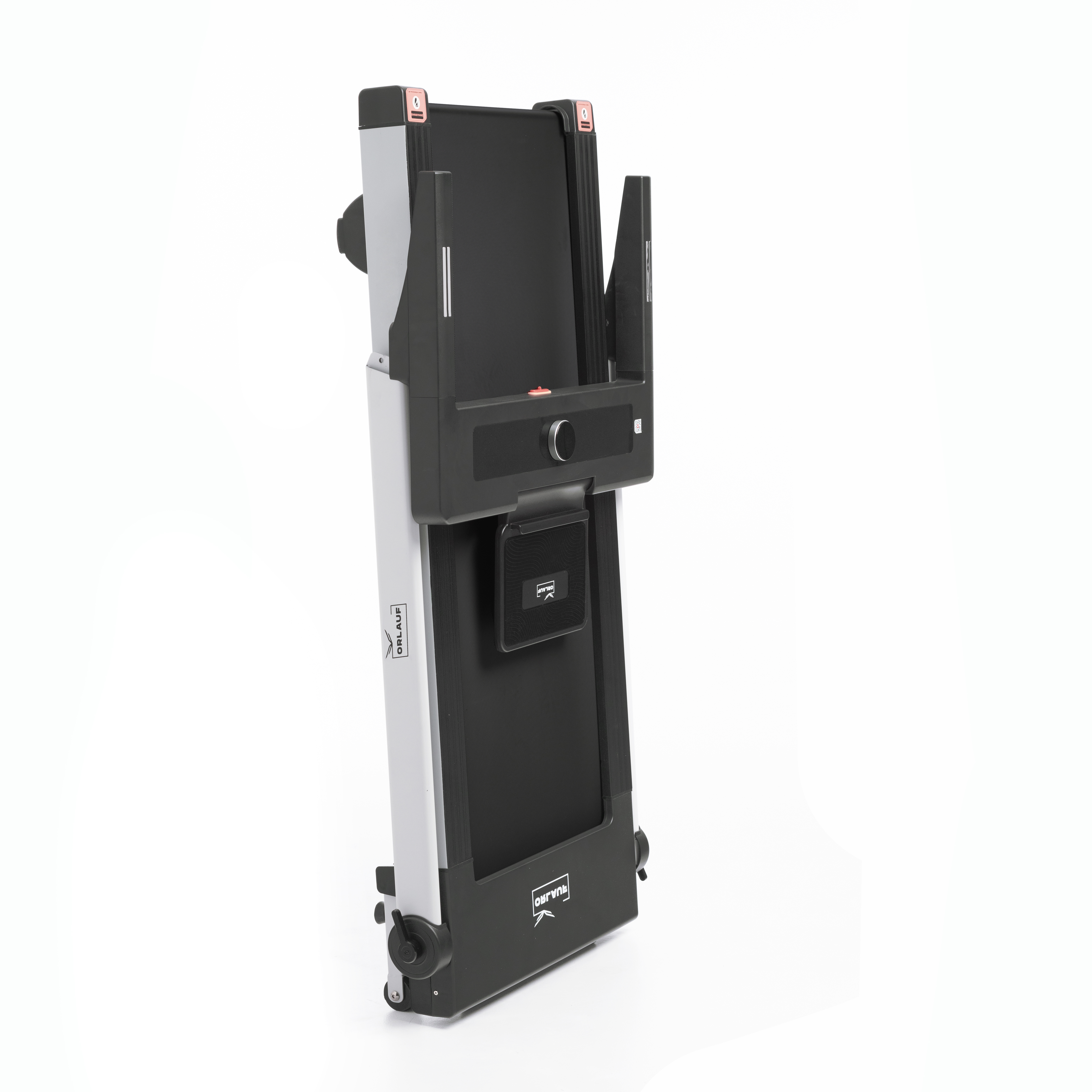 Orlauf Corvus разработана с учетом особенностей домашнего использования. В сложенном виде ее толщина составляет всего 25 см, что позволяет размещать тренажер даже в компактных квартирах. Эти габариты помогают экономить место и обеспечивают удобство хранения.