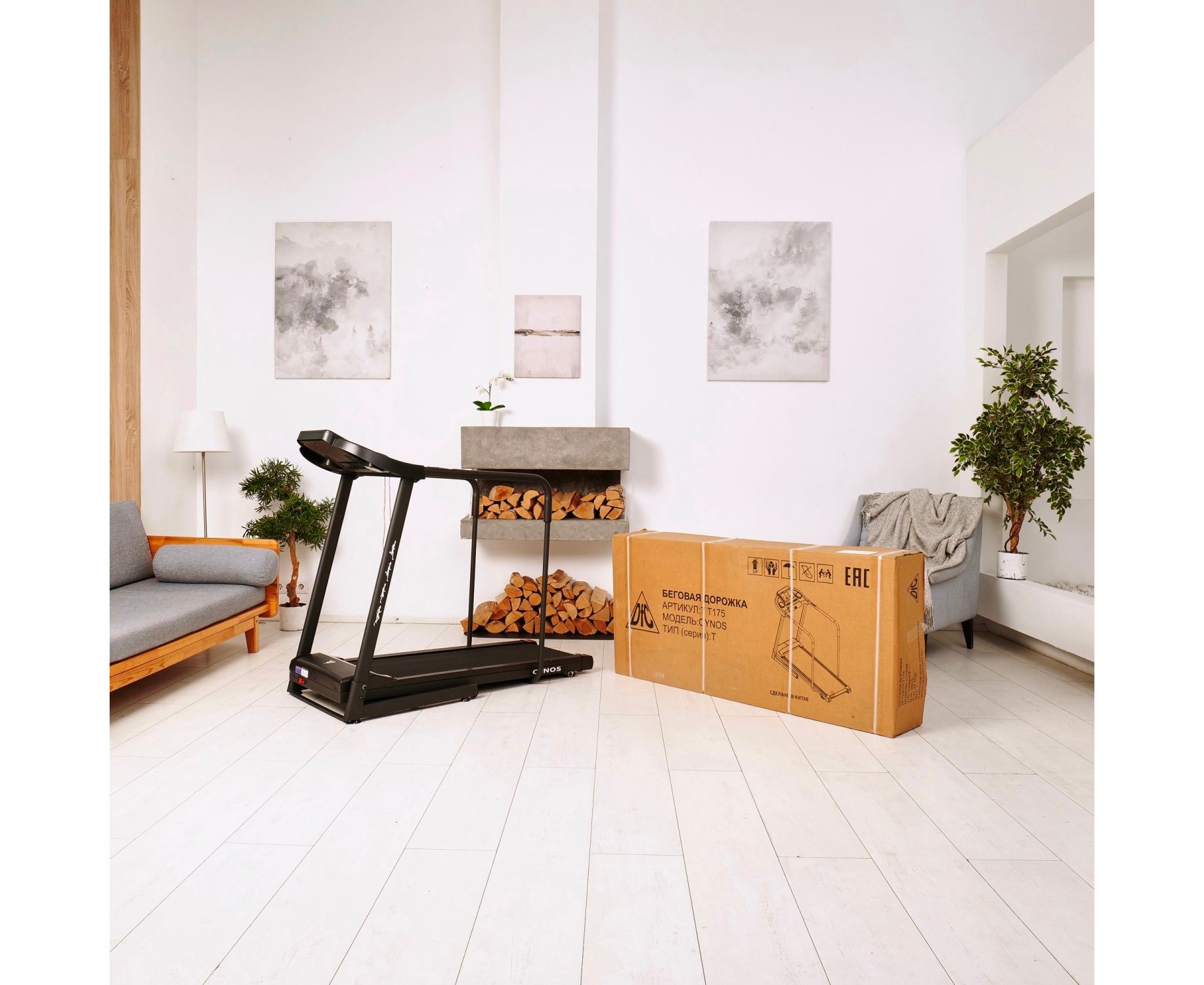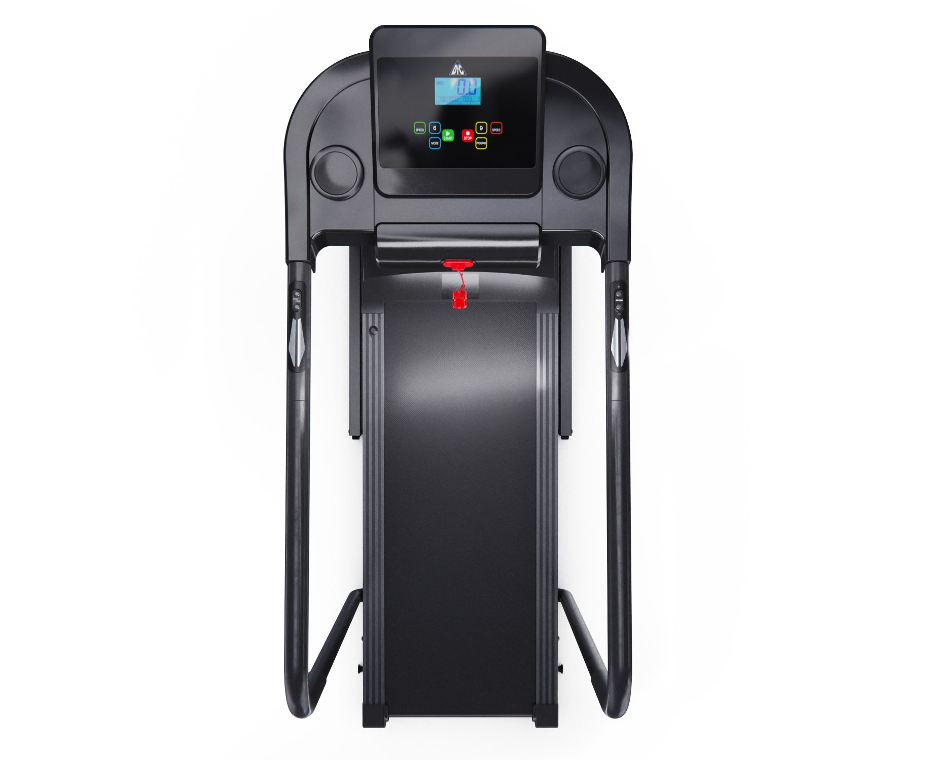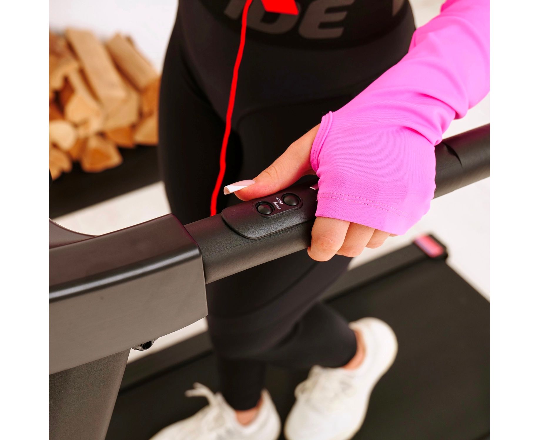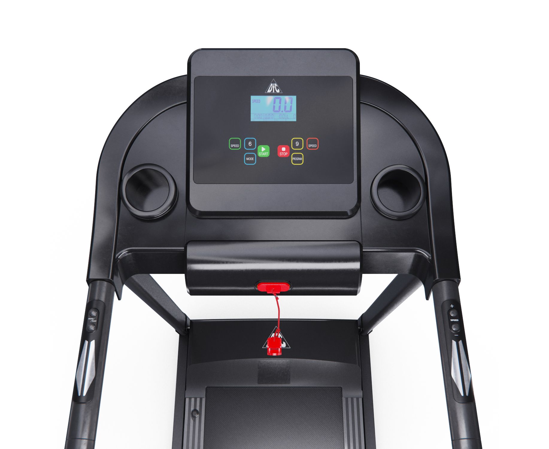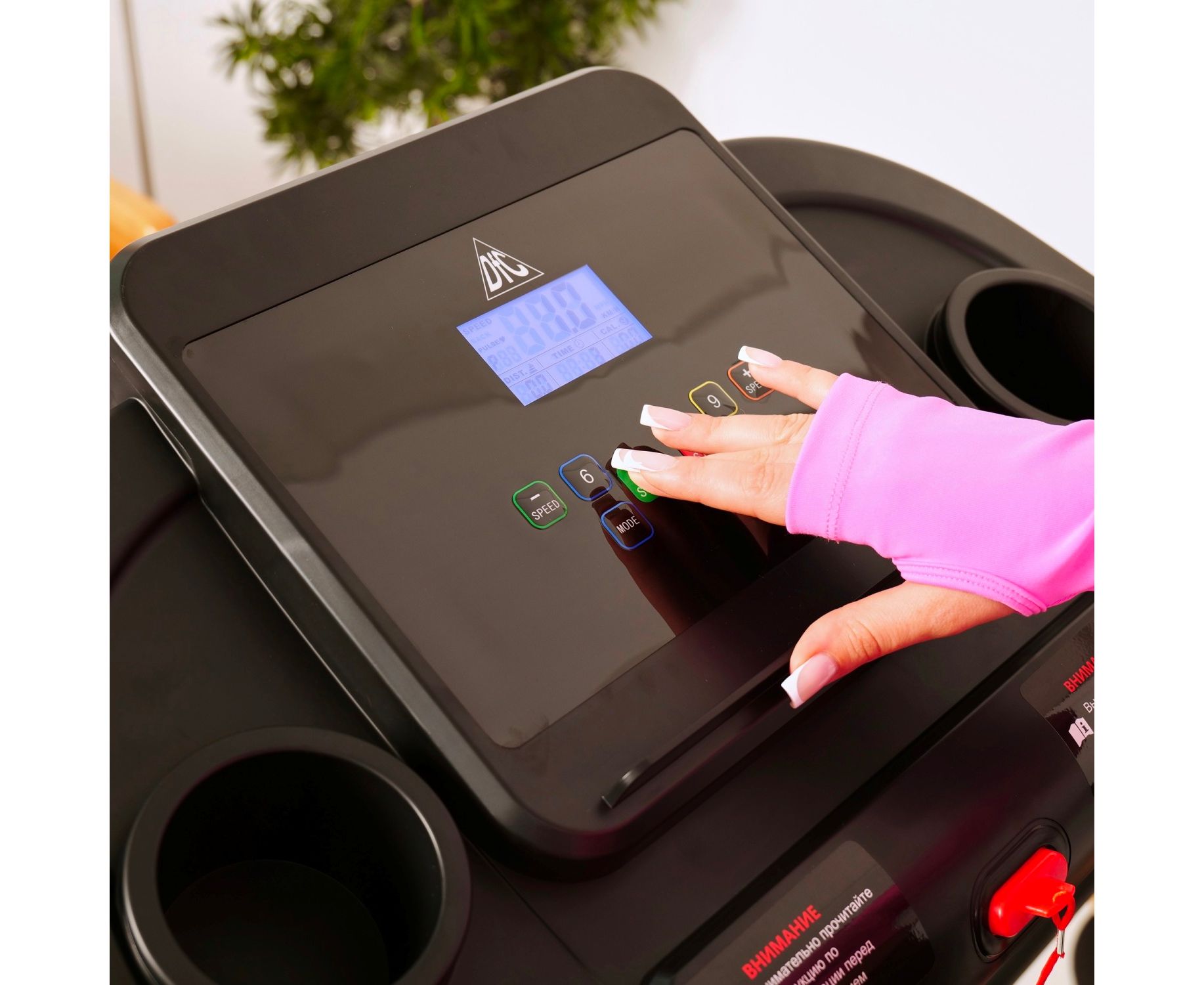 Для максимального комфорта во время тренировок предусмотрены подставка для планшета, две ниши для стаканов или бутылки с водой. На поручнях расположены кнопки регулировки скорости, а также датчики пульса. Имеется 12 встроенных программ тренировок, а также возможность вручную отрегулировать угол наклона в 3-х положениях. Дорожка развивает скорость до 12 километров в час. Шаг изменения скорости беговой дорожки 0,1 км/ч. Предназначена для людей, чей вес не превышает 120 кг.
