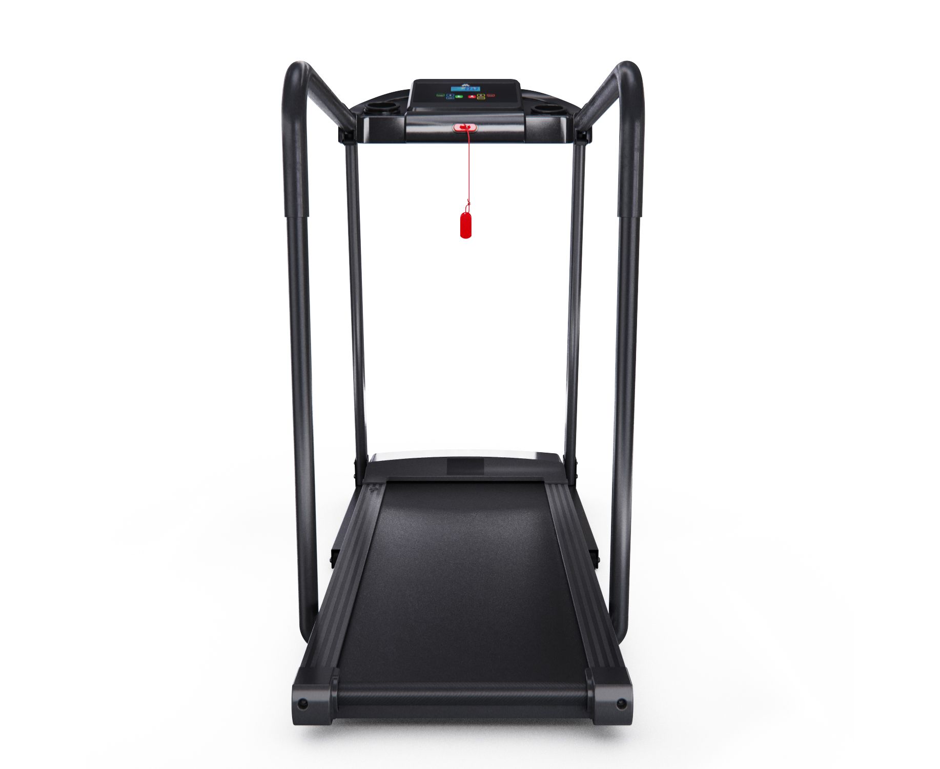 Эта модель беговой дорожки универсальна. Может использоваться для частных тренировок в домашних условиях при различных нагрузках. Входящие в комплект поручни превращают её в эффективный тренажёр для реабилитации после перенесённых заболеваний и операций на опорно-двигательном аппарате. Для обоих случаев предусмотрены подходящие программы тренировок.