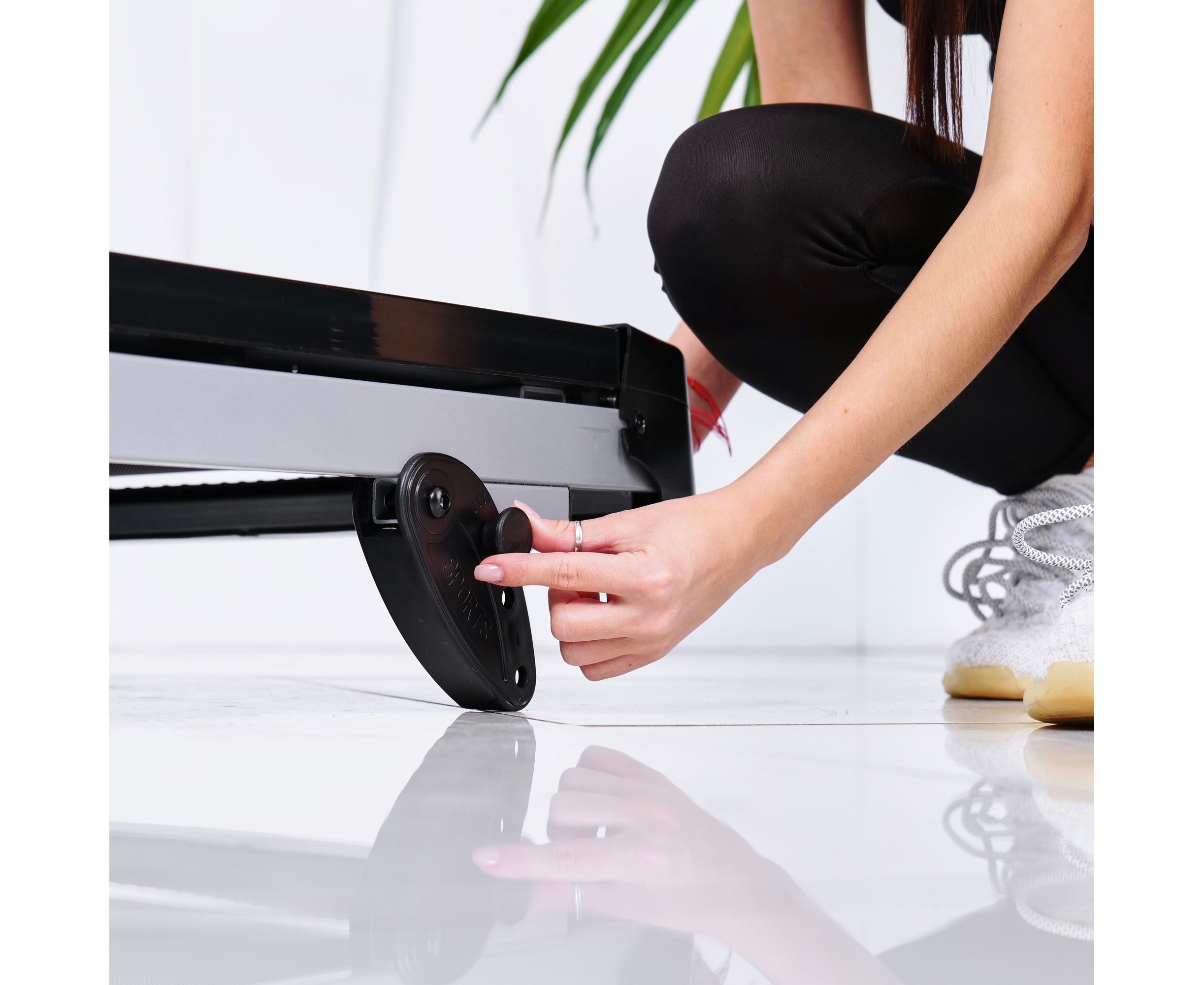 Максимальный вес пользователя до 110 кг делает эту дорожку подходящей для людей разных комплекций. Система Air Cushion повышает амортизацию полотна, благодаря чему во время бега нагрузка на суставы минимальна. Складная конструкция облегчает хранение и транспортировку тренажёра, а гидравлический цилиндр позволяет легко сложить и разложить дорожку.