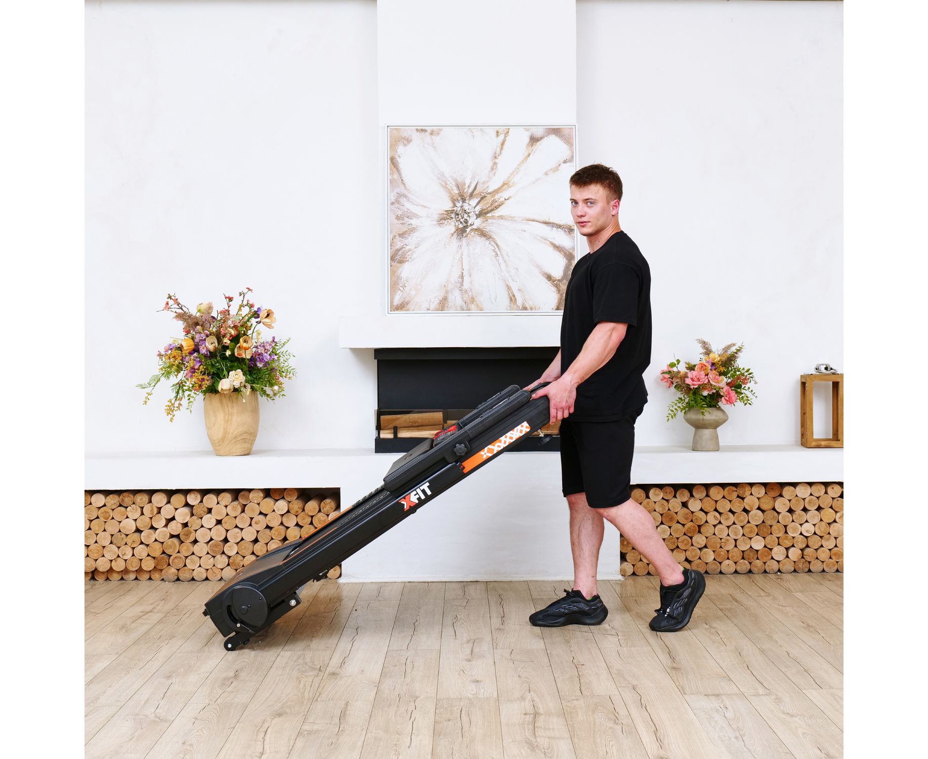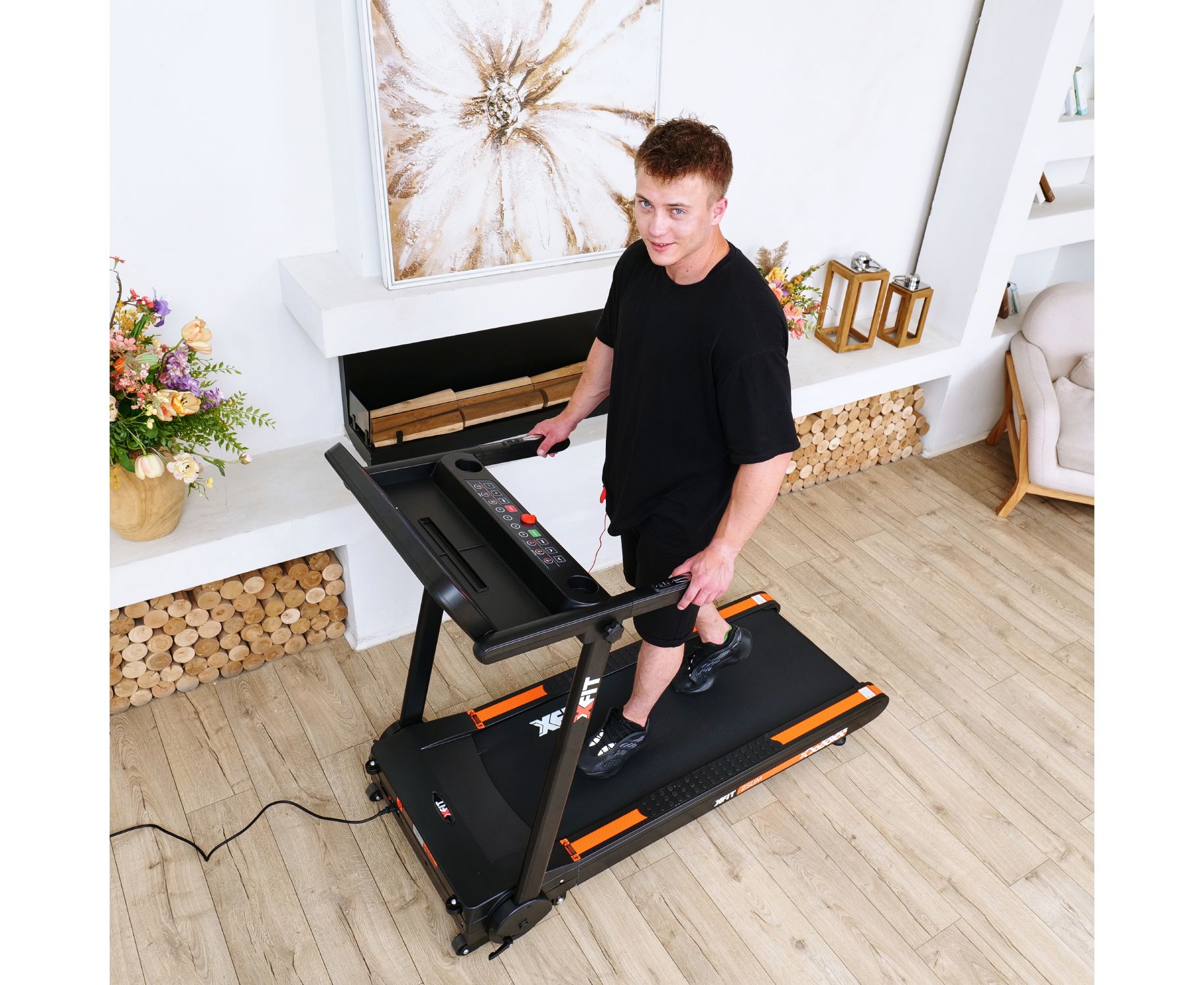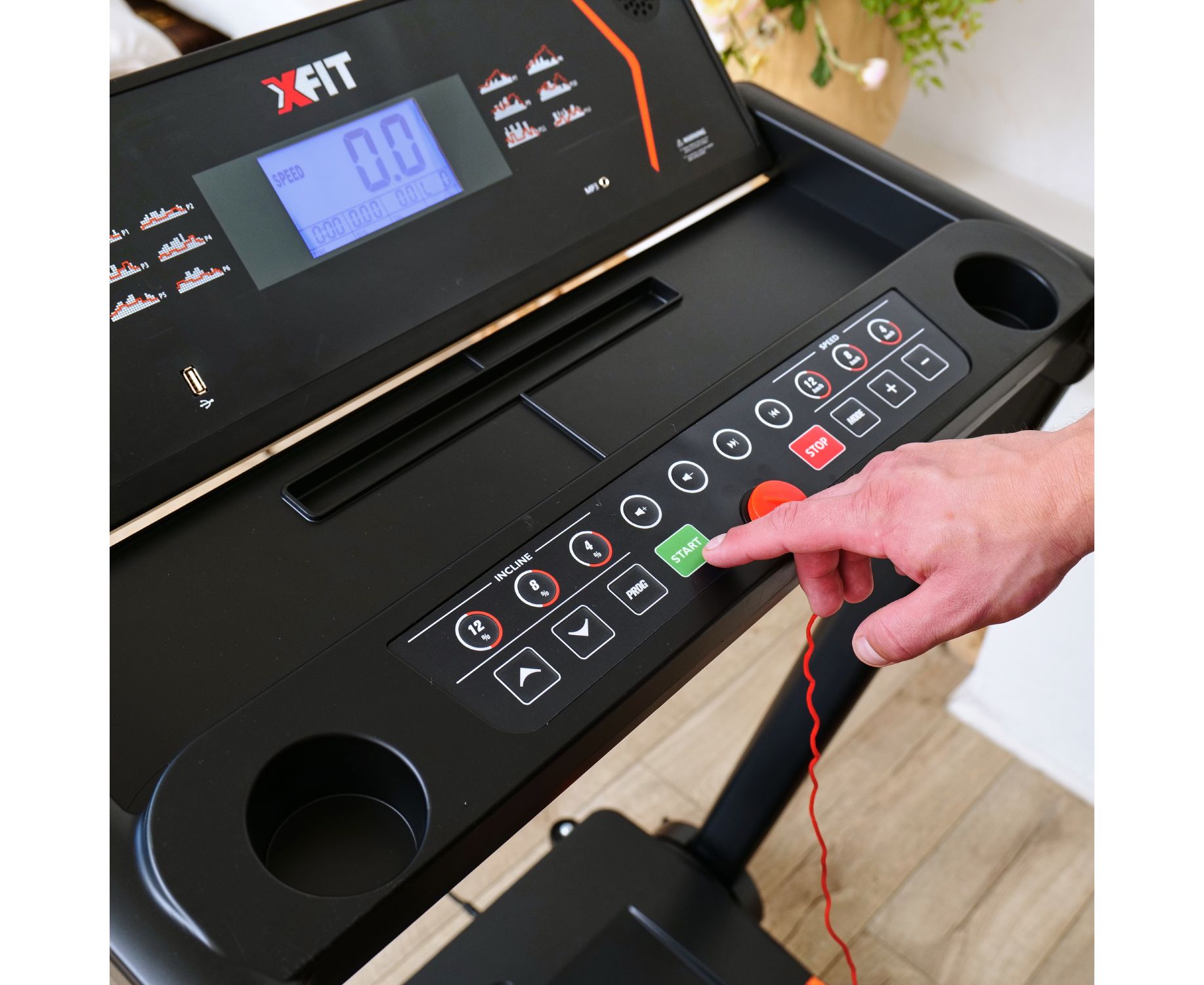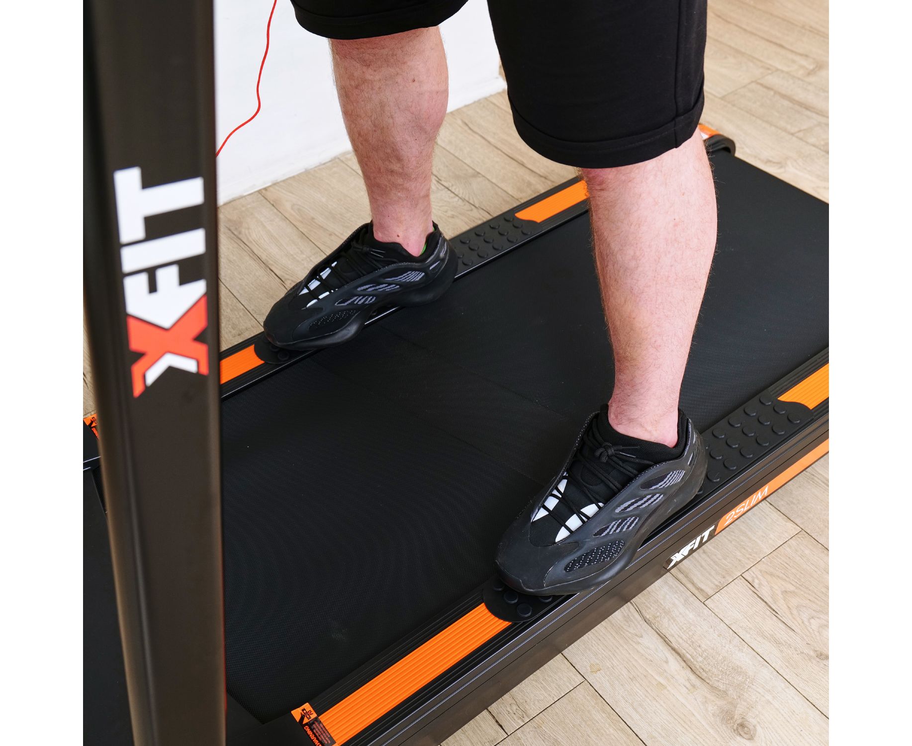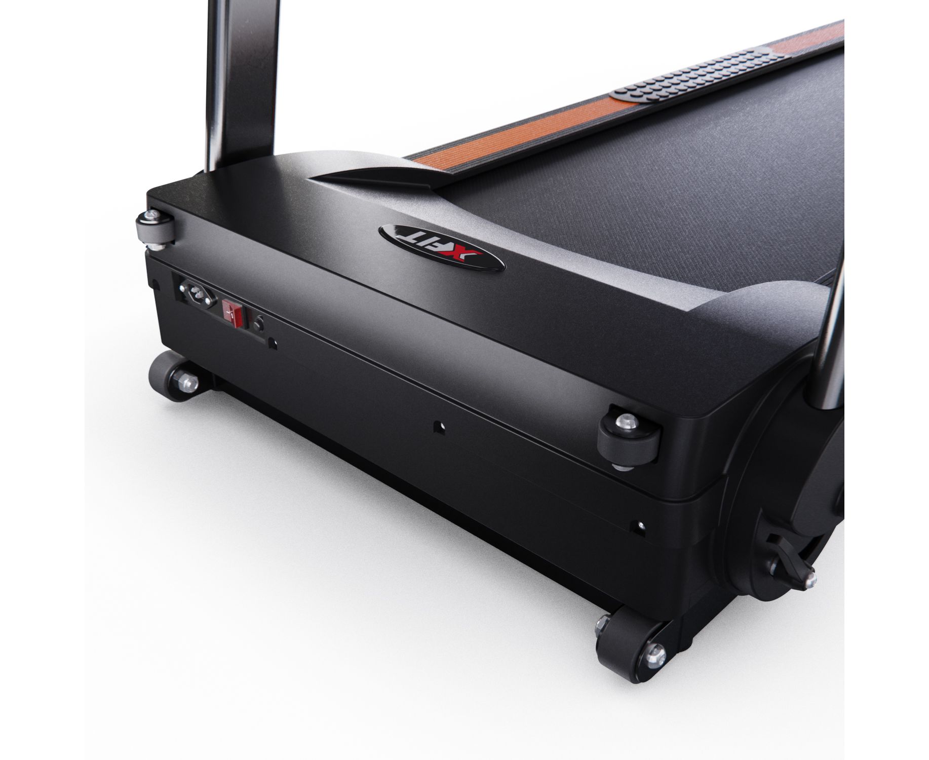 На бортах бегового полотна есть специальные нескользящие боковые подножки для начала тренировки: перед тренировкой встаньте на них, а затем запустите тренажёр.