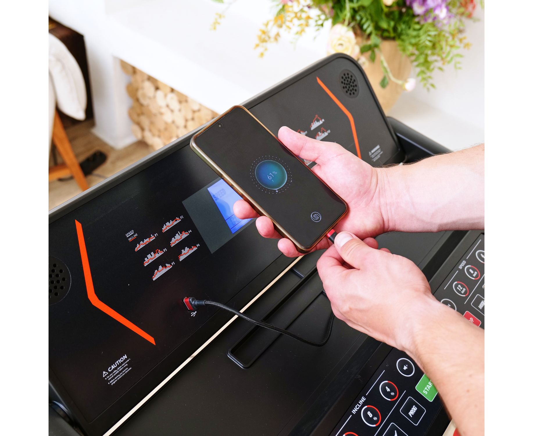 Консоль дорожки оснащена двумя динамиками для прослушивания музыки во время тренировки и USB-портом для подключения внешних устройств, таких как смартфоны или планшеты и воспроизведения MP3 файлов с USB флэш-накопителя. Также есть возможность подключения кардиомонитора для более точного отслеживания сердечного ритма во время тренировок.