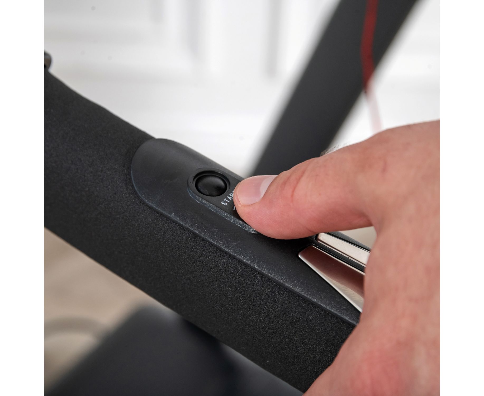 На поручнях так же расположены "быстрые кнопки" - это кнопки запуска и остановки бегового полотна, а так же кнопки изменения скорости. Это позволяет не отрывать руки с поручней во время занятий не тренажере.