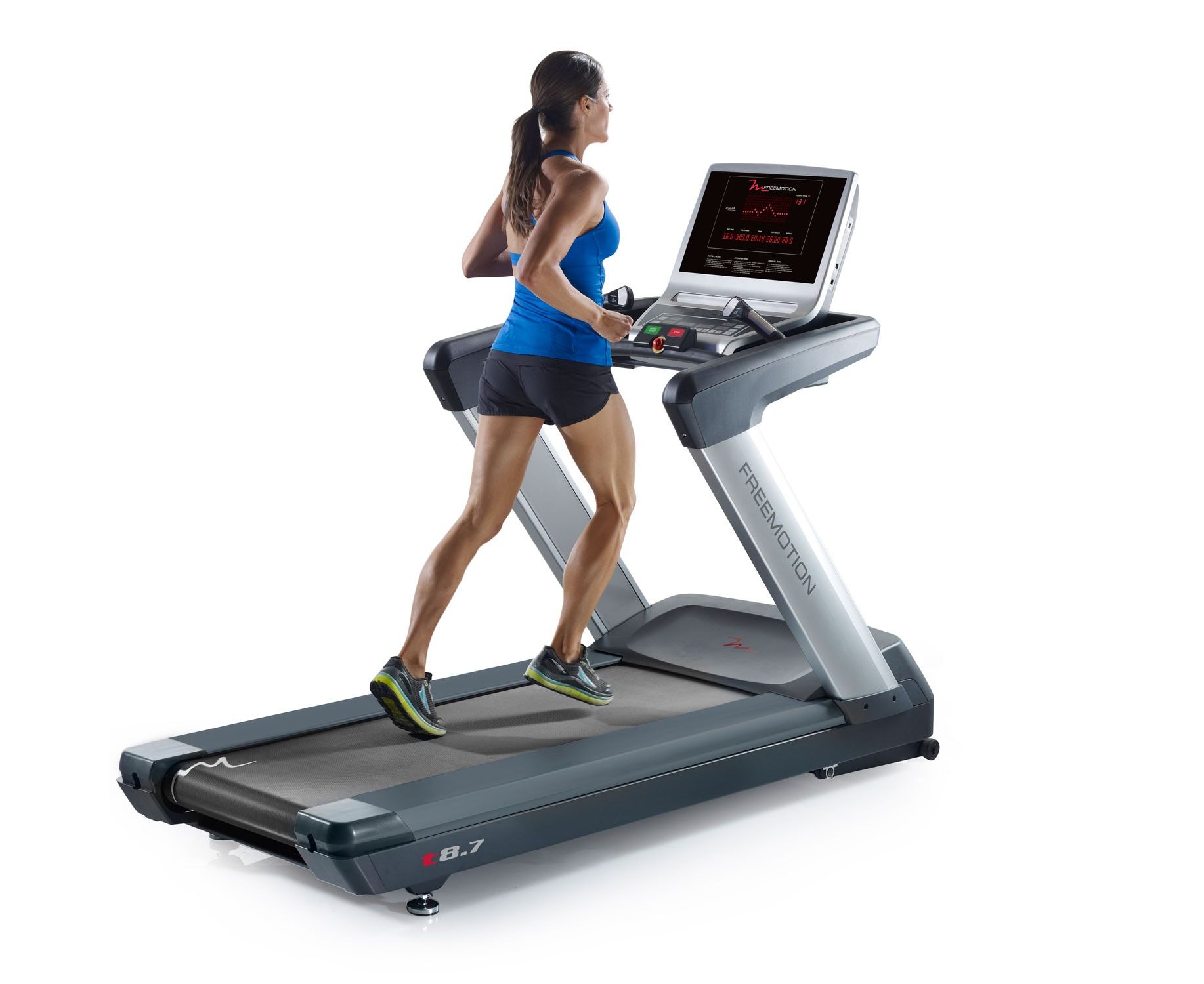 Профессиональная беговая дорожка Freemotion t8.7 является идеальным решением для легкого и быстрого доступа к управлению скоростью и углом наклона. Беговая дорожка открывает новые возможности в процессе тренировки при достижении максимальной скорости в 24 км/ч и наклоном до 15%. Это универсальная дорожка для спринт-интервальной тренировки. Она идеально подходит для активного стареющего населения и новых пользователей. Широкие стойки и боковые подножки создают больше места для ног с целью дополнительной безопасности.