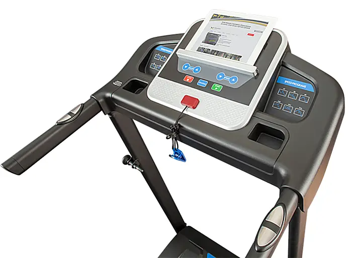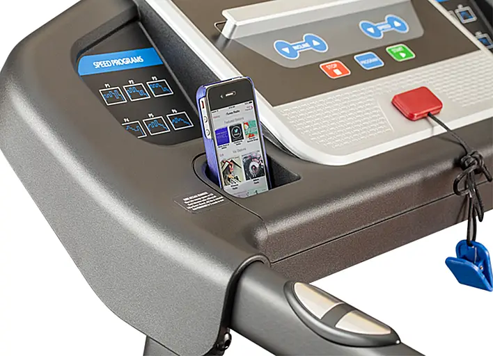 Вся необходимая информация о тренировке выводится на большом 5-дюймовом ЖК-дисплее с удобным расположением кнопок. Для вашего удобства есть встроенная подставка для планшета и аксессуаров, где вы можете хранить пульт дистанционного управления и все необходимые вещи под рукой, именно там, где вам нужно. Датчики пульса на боковых ручках удобно помогают вам оставаться в зоне тренировки. Дополнительно для беспроводного контроля пульса тренажер оснащен телеметрическим приемником 5кГц.