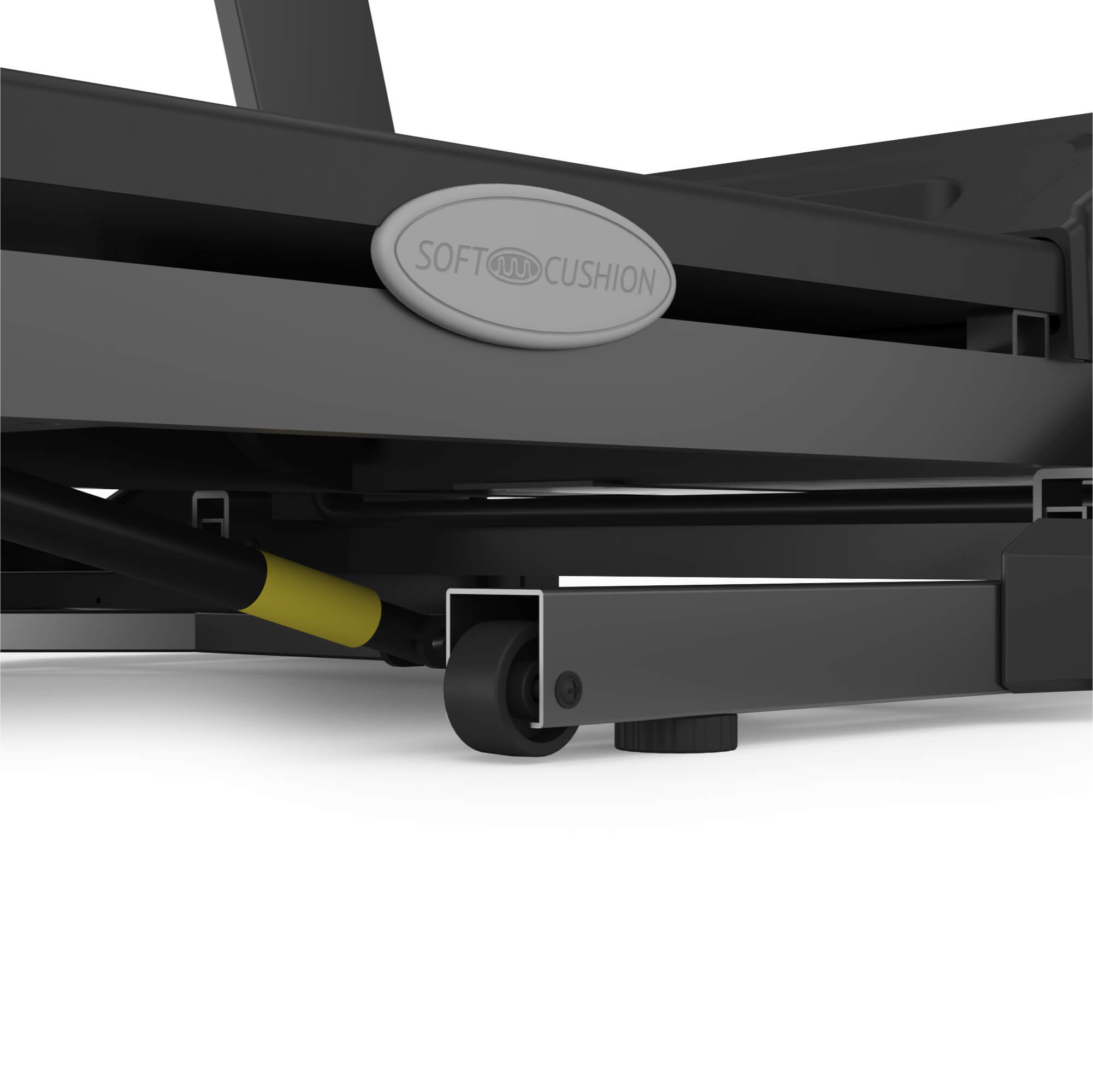 Особый акцент сделан на комфорте пользователей весом до 130 кг благодаря продуманной конструкции бегового трехслойного полотна размером 135x44 сантиметров. Его усиленная износостойкость и устойчивость к скольжению гарантирует долговечность и безопасность при любых нагрузках. Дополнительно домашний кардио тренажер оборудован уникальной системой амортизации из 6 пружинных эластомеров с силиконовыми демпфирующими подушечками ElasticShock. Такая комбинация поглощает практически всю ударную нагрузку на ноги и спину, снижая риск травмирования позвоночника и суставов.