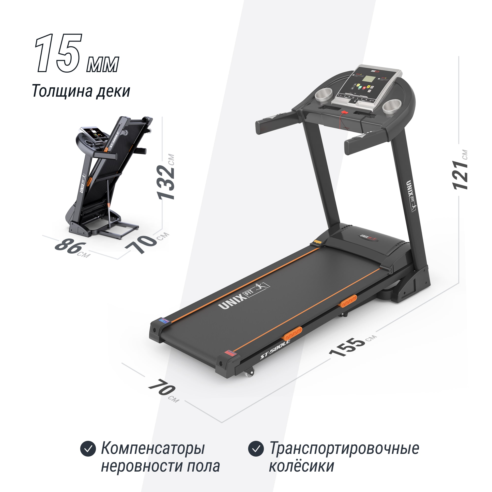 Беговая дорожка UNIX Fit ST-580LE идеальное решение для тех, кто ценит комфорт, эффективность и современный подход к фитнесу. Беговая дорожка станет не только личным тренером, но и верным помощником на пути к достижению ваших спортивных целей.