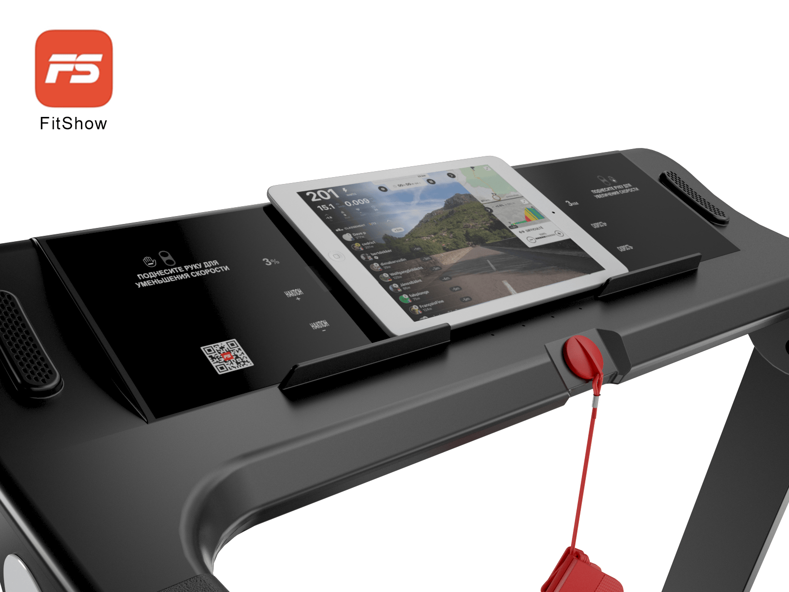 *Также, имеется возможность синхронизации беговой дорожки с мобильным устройством при помощи приложений FitShow, Kinomap (подключение через Bluetooth) с возможностью управления беговой дорожкой и сохранения тренировок.