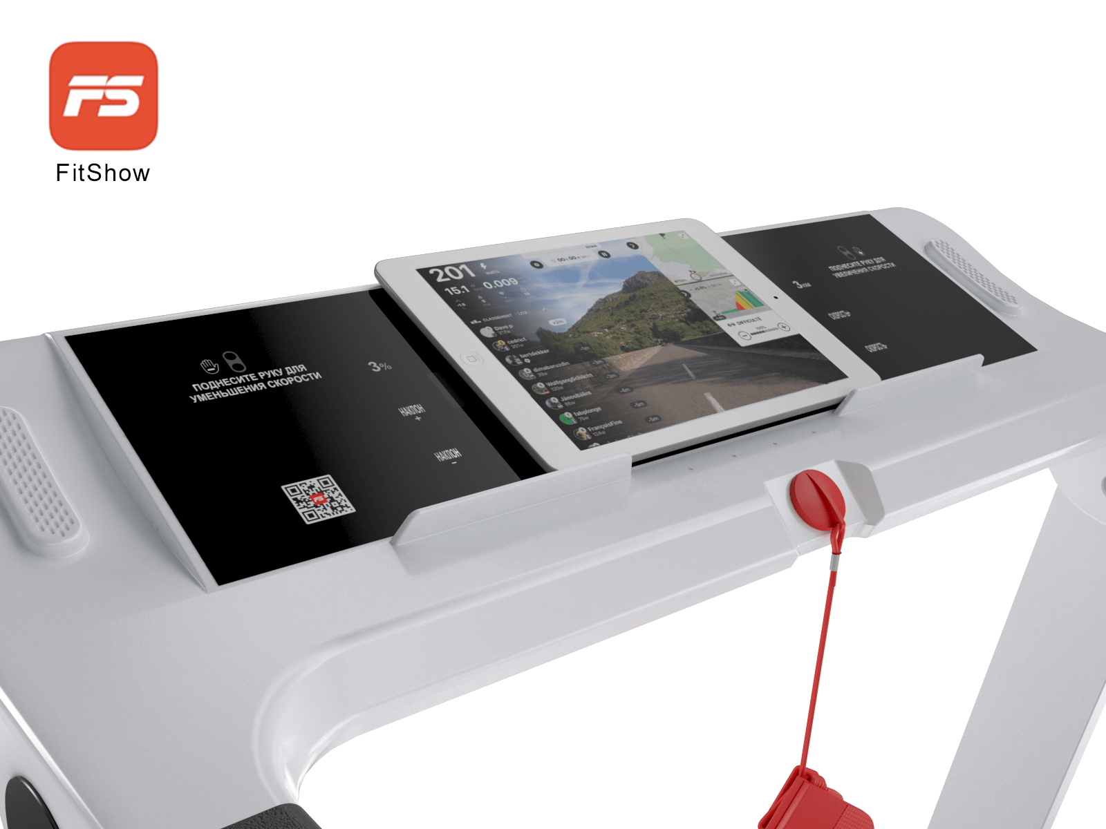 *Также, имеется возможность синхронизации беговой дорожки с мобильным устройством при помощи приложений FitShow, Kinomap (подключение через Bluetooth) с возможностью управления беговой дорожкой и сохранения тренировок.