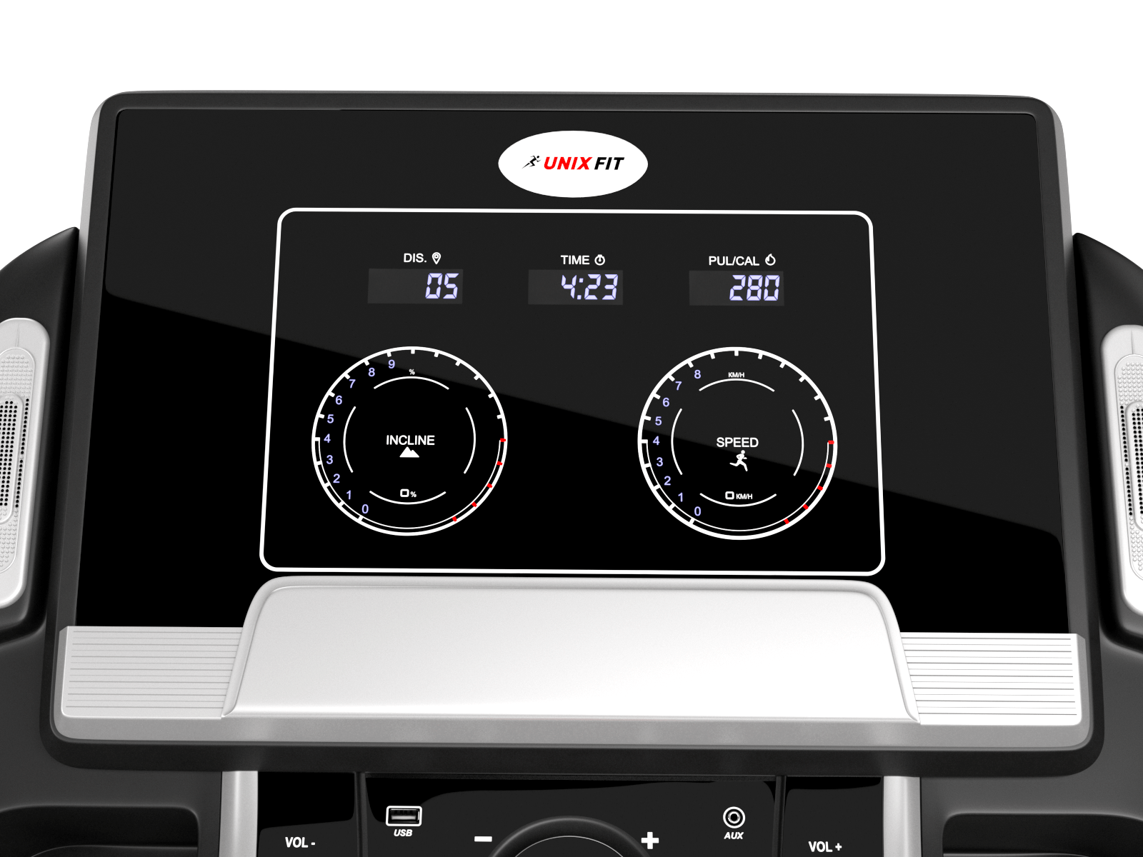 Беговая дорожка UNIX Fit MX-990X – отличный вариант домашнего тренажёра, предназначенного для активных кардионагрузок. Серия UNIX Fit MX – это сочетание надёжности и высокого качества тренажёра, а также стильного дизайна, который легко впишется в вашу квартиру. Компактная сборка тренажера, мощная рама и внушительный вес (95 кг) – это то, что придётся по вкусу любому пользователю, который хочет совместить в дорожке характеристики профессиональных моделей и моделей для дома.