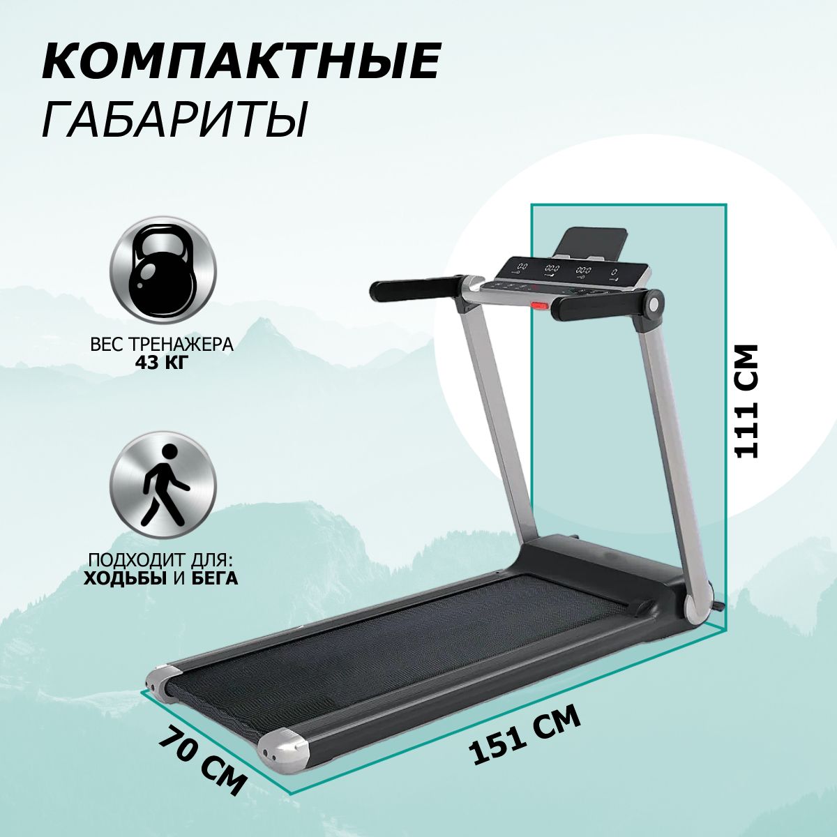 Беговое полотно: 420 х 1 210 мм