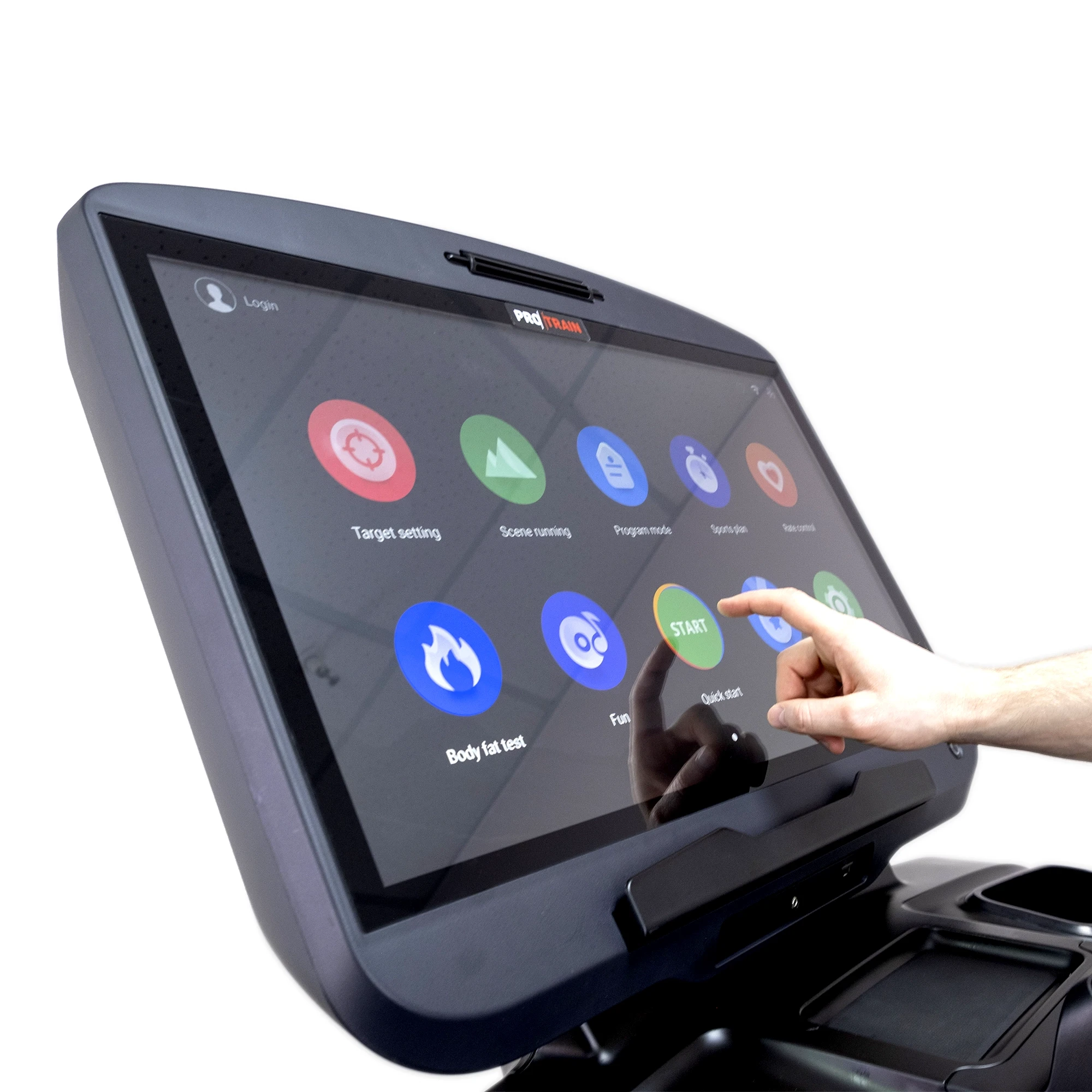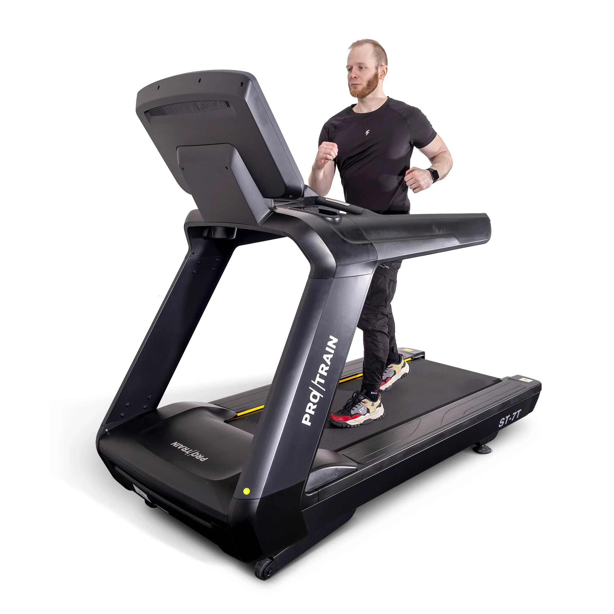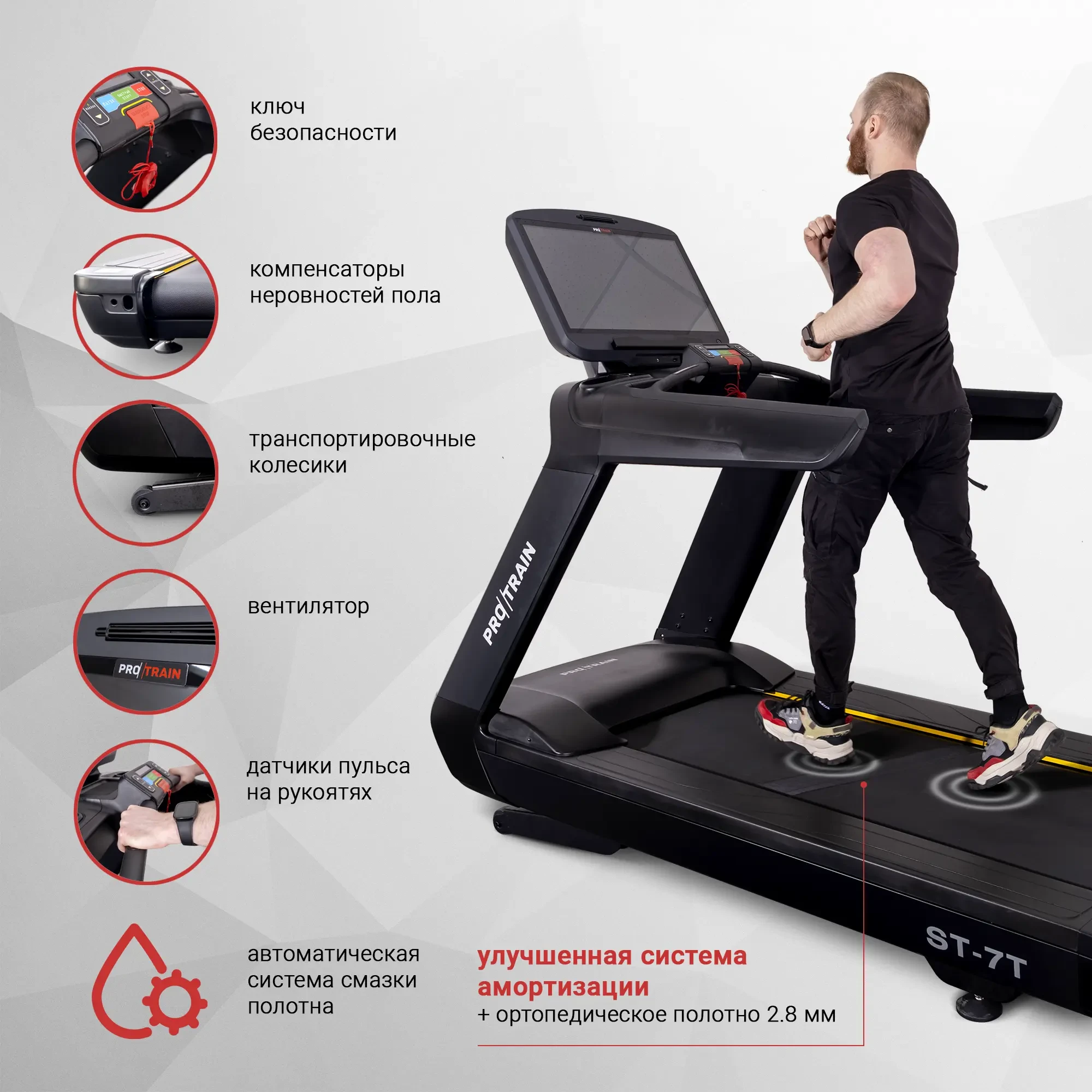 Protrain ST-7T — профессиональная беговая дорожка . Мощный двигатель, устойчивая конструкция и огромные возможности мультимедиа делают эту модель прекрасным вариантом для тренировок в залах с большой проходимостью.