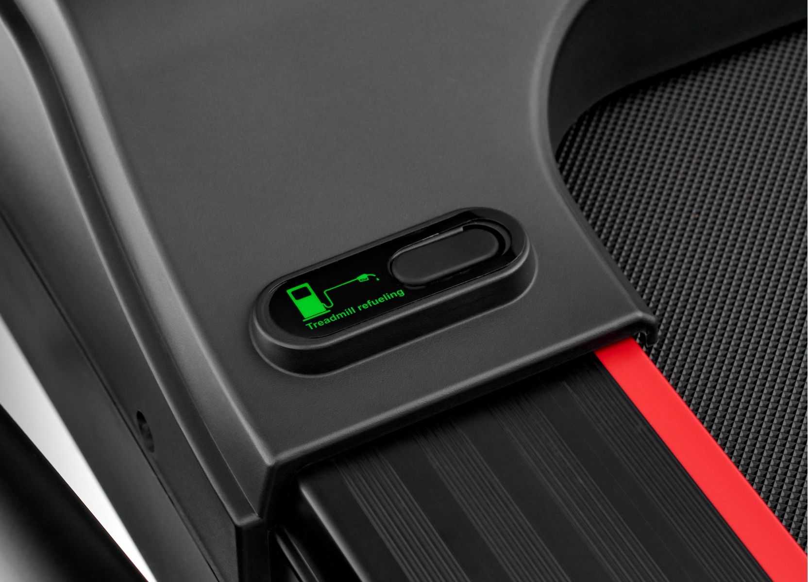 Titanium Masters Physiotech A480 легко складывается с помощью двухфазной гидравлики easy-DROP™ и перемещается посредством 2-ух транспортировочных роликов. Преимуществом дорожки является система автоматического смазывания. Достаточно раз в несколько месяцев доливать силиконовую смазку в специальную емкость – и далее система будет самостоятельно распределять необходимое количество смазки.
