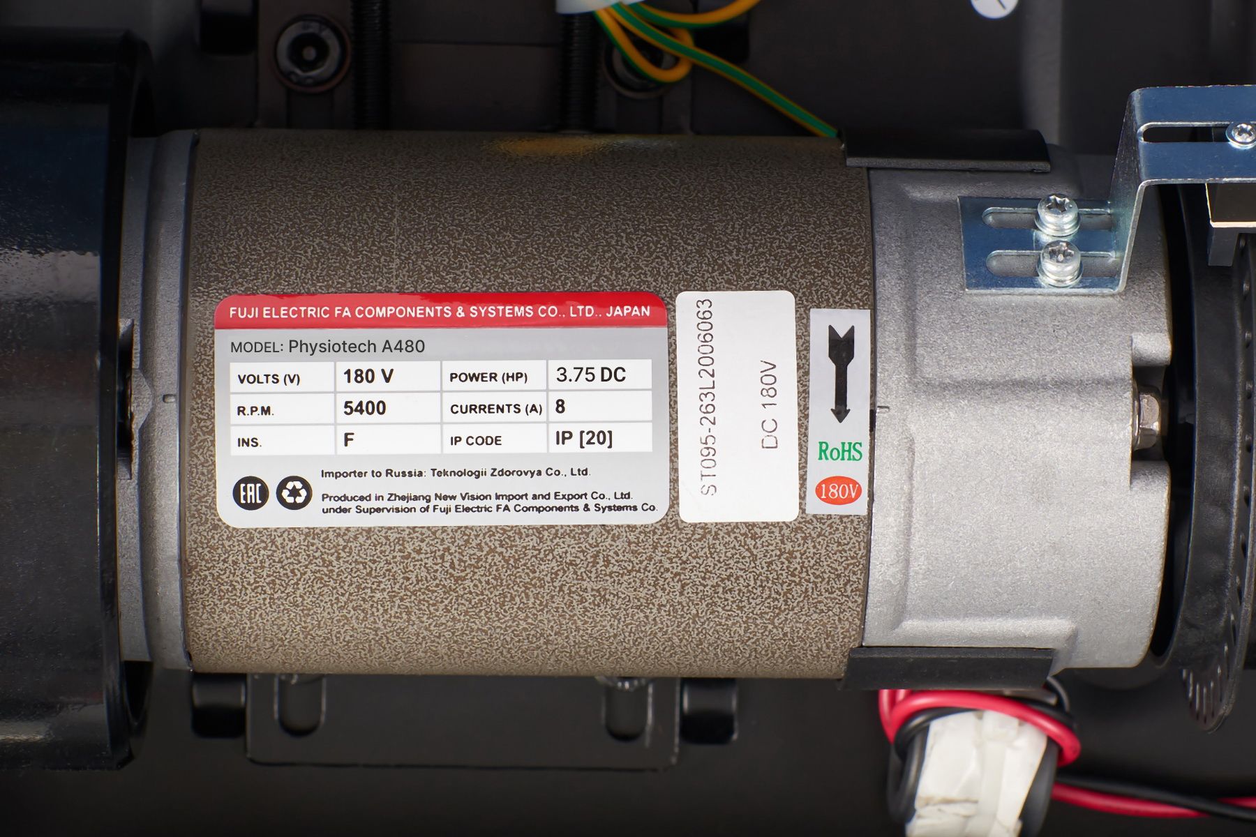 В Titanium Masters Physiotech A480 установлен один из самых надежных в индустрии двигателей от японской Fuji Electric. Учитывая мощность в 3,75 л.с., максимальный вес пользователя практически не ограничен и составляет 160 кг. Движение полотна максимально плавное, у него нет эффекта проскальзывания. Само полотно большое, комфортное и безопасное – его размер составляет 141 см в длину и 52 см в ширину. Благодаря мощному мотору, Physiotech A480 показывает высокие скоростные параметры – максимальная скорость составляет 20 км/ч. Конечно же, дорожка такого уровня не может быть без электрического угла наклона, его диапазон оставляет от 0 до 20%. На верхних значениях угол достаточно крутой и обеспечит достаточную нагрузку тем пользователям, кому нужно получить от тренажера максимум. Амортизационная платформа, скомбинированная из связки 2-х полиуретановых амортизаторов rubber-HEADS™и 8-ми динамических эластомеров VCS™ коммерческого класса, настроена на средне-мягкий уровень жесткости и является одной из лучших на сегодняшний день систем амортизации с минимальной нагрузкой на суставы.