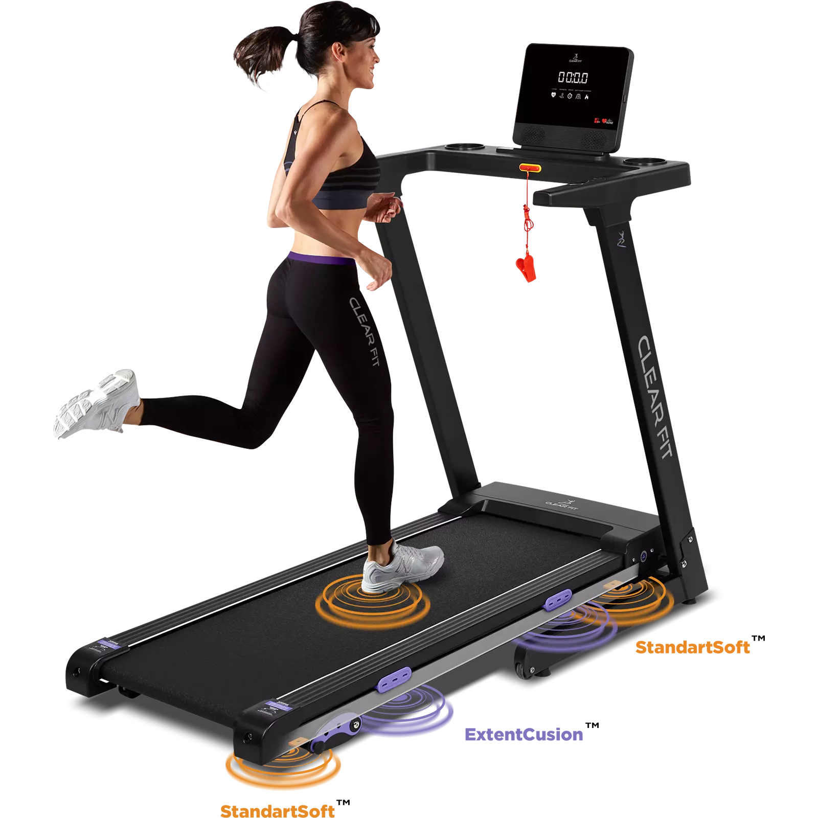 В обновленной версии 2024 года беговой дорожки для домашних тренировок Clear Fit серия CrossPower модели CT 420 MI добавлен программный пакет из трех пульсозависимых программ. Компактная и удобная, вне зависимости от погоды, всегда обеспечит комфортную тренировку в стенах вашего дома. Надежный, бесшумный двигатель беговых дорожек серии CrossPower развивает скорость в диапазоне от 0.8 км/ч до 14 км/ч, плавное изменение и стабильное движение на всех оборотах. Прочная дека и усиленная конструкция рассчитаны для пользователей до 135 кг. Двойная система амортизации по периметру от ударной нагрузки для суставов и позвоночника обеспечивает комфортные безопасные ходьбу и бег. Улучшенная современная система амортизации подходит для любого возраста.