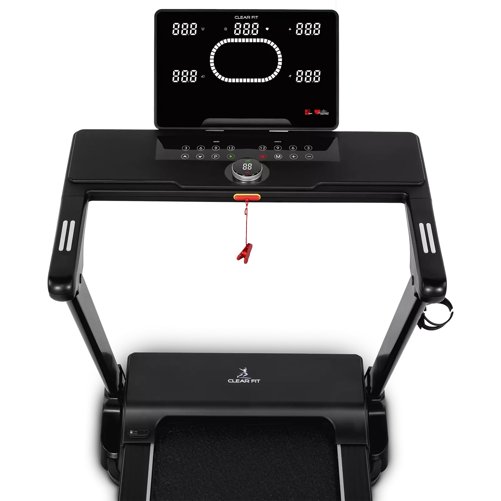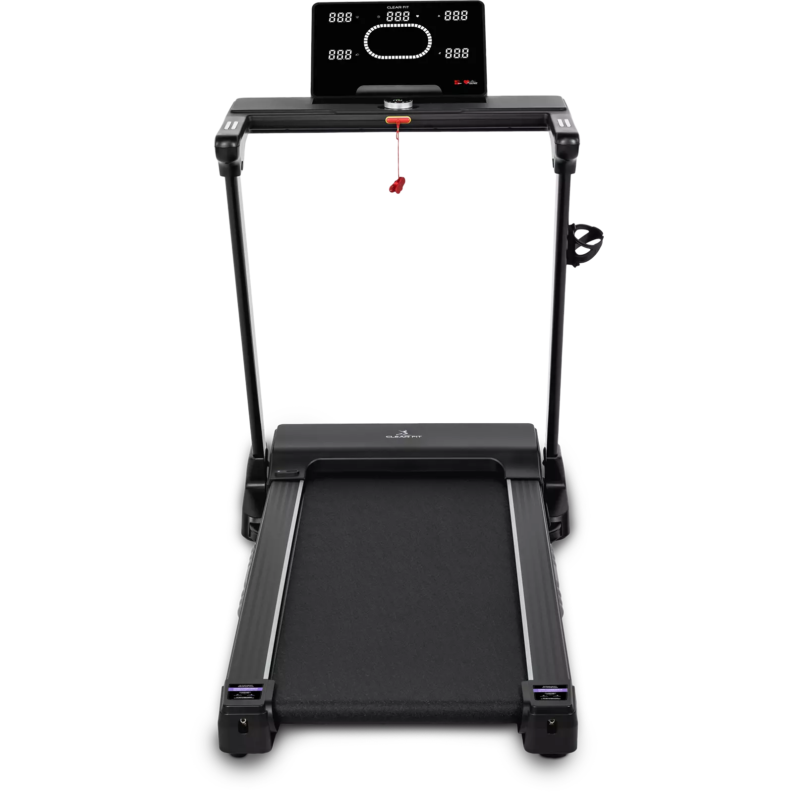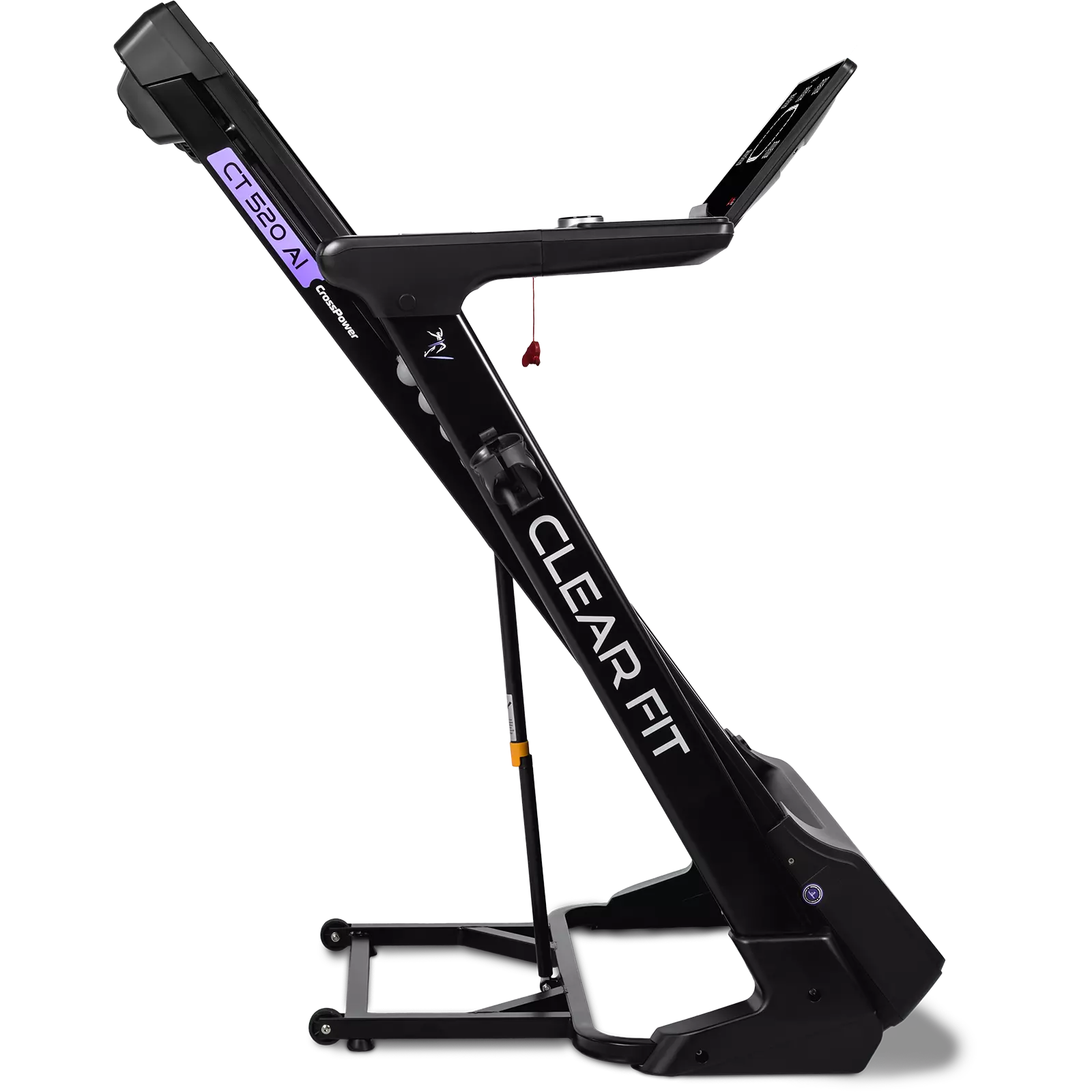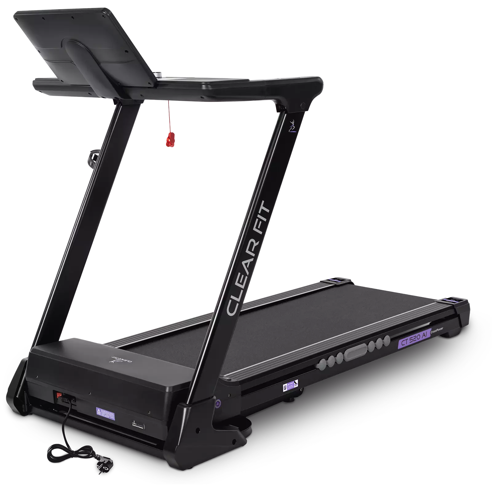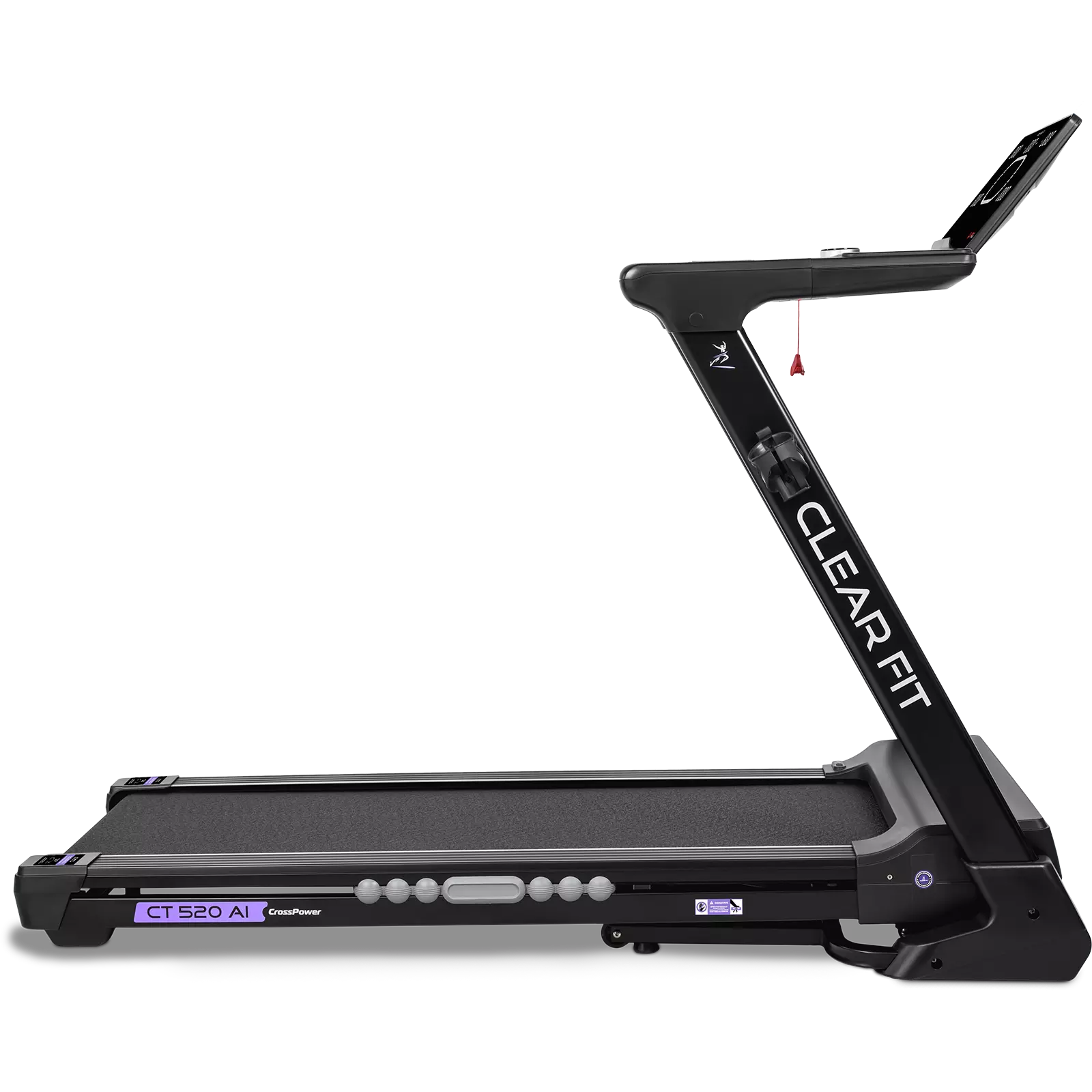 Беговая дорожка для дома Clear Fit серия CrossPower модель CT 520 AI лучший выбор для домашних тренировок бегом и ходьбой: просторное полотно 520 х 1400 мм, электрическое изменение угла наклона 15 уровней, мощный двигатель и современная консоль управления: вариатор шайба с дисплеем, автоматическая смазка полотна, Bluetooth модуль, HRC, расширенный пакет программ, подстаканник и подставка для гаджетов. Надежный, бесшумный двигатель развивает скорость от 1 км/ч до 18 км/ч, плавное изменение и стабильное движение на всех оборотах. Прочная дека и мощная конструкция рассчитаны для пользователей до 150 кг. Качественная зонированная амортизация: 8 эластомеров по периметру SensibleCushion™ и 2 амортизатора ExtentCushion™ в активной зоне, оптимальная, для ходьбы и бега в любом возрасте, защита от ударной нагрузки на суставы и позвоночник.