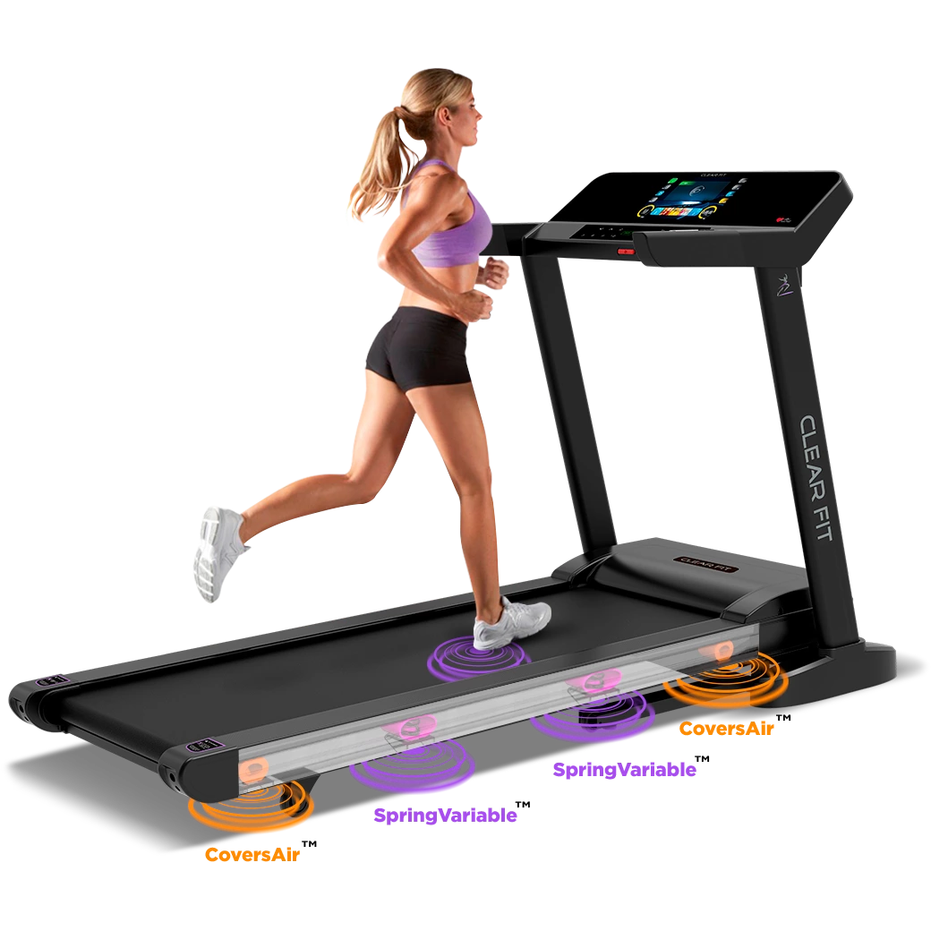 Инновационная система амортизации моделей LT 40 и LT 50 серии LifeCardio от Clear Fit: пружинные адаптивные эластомеры SpringVariable™ центральной зоны и фигурные CoversAir ™ в передней и задней части, обеспечивает максимальную безопасность и комфорт, эффективно снижает нагрузку на суставы и позвоночник как при беге, так и при длительной ходьбе, подходит для любого возраста спортсменов.