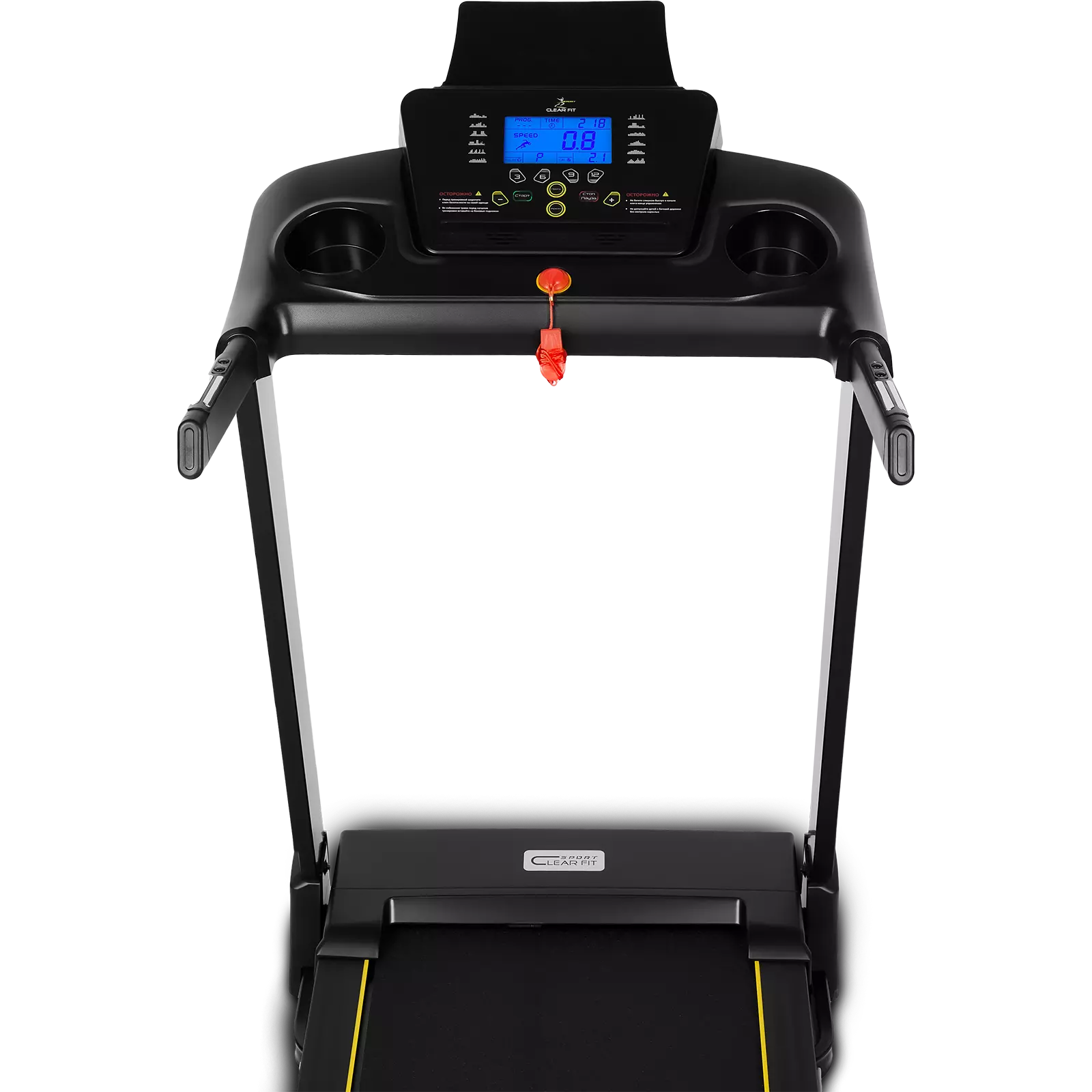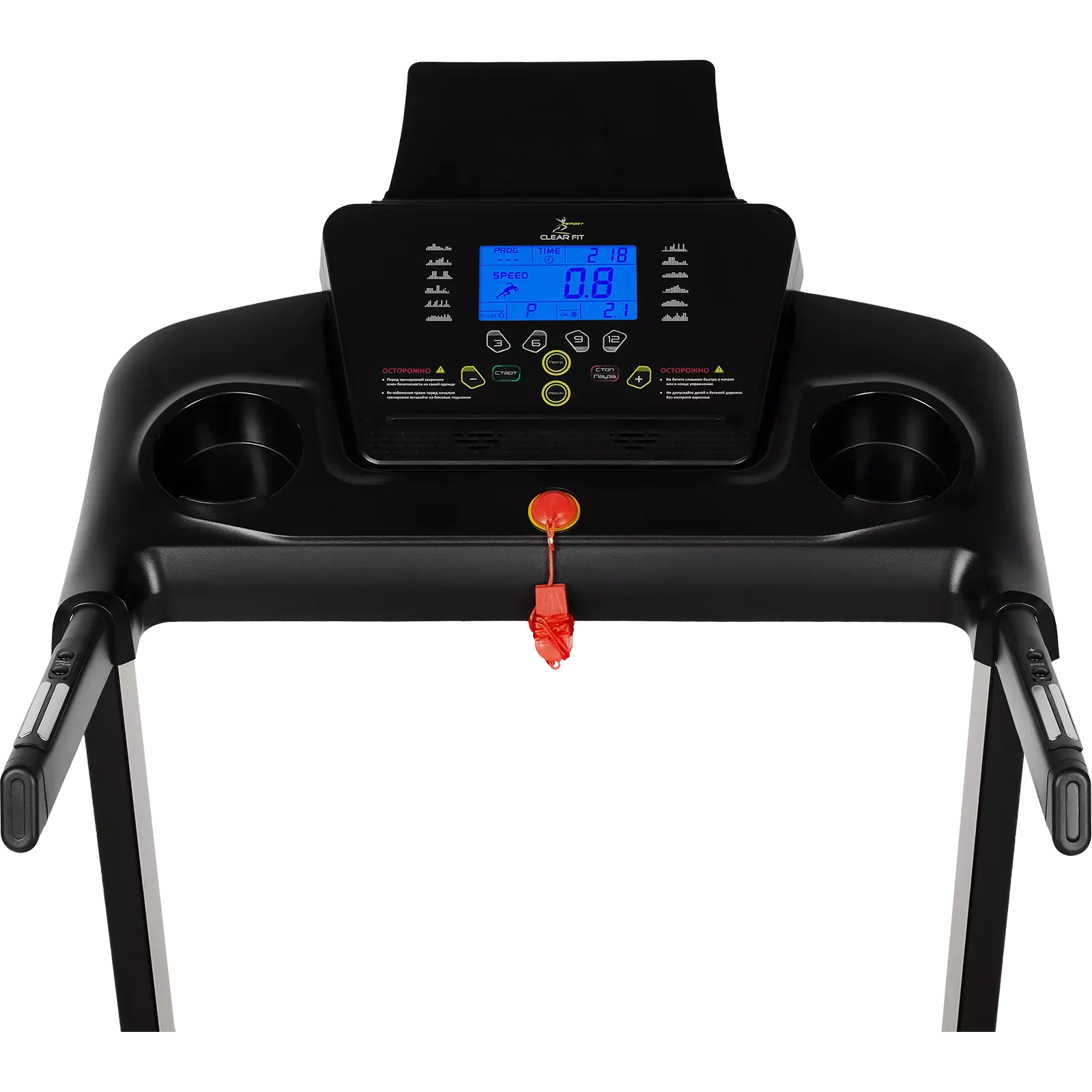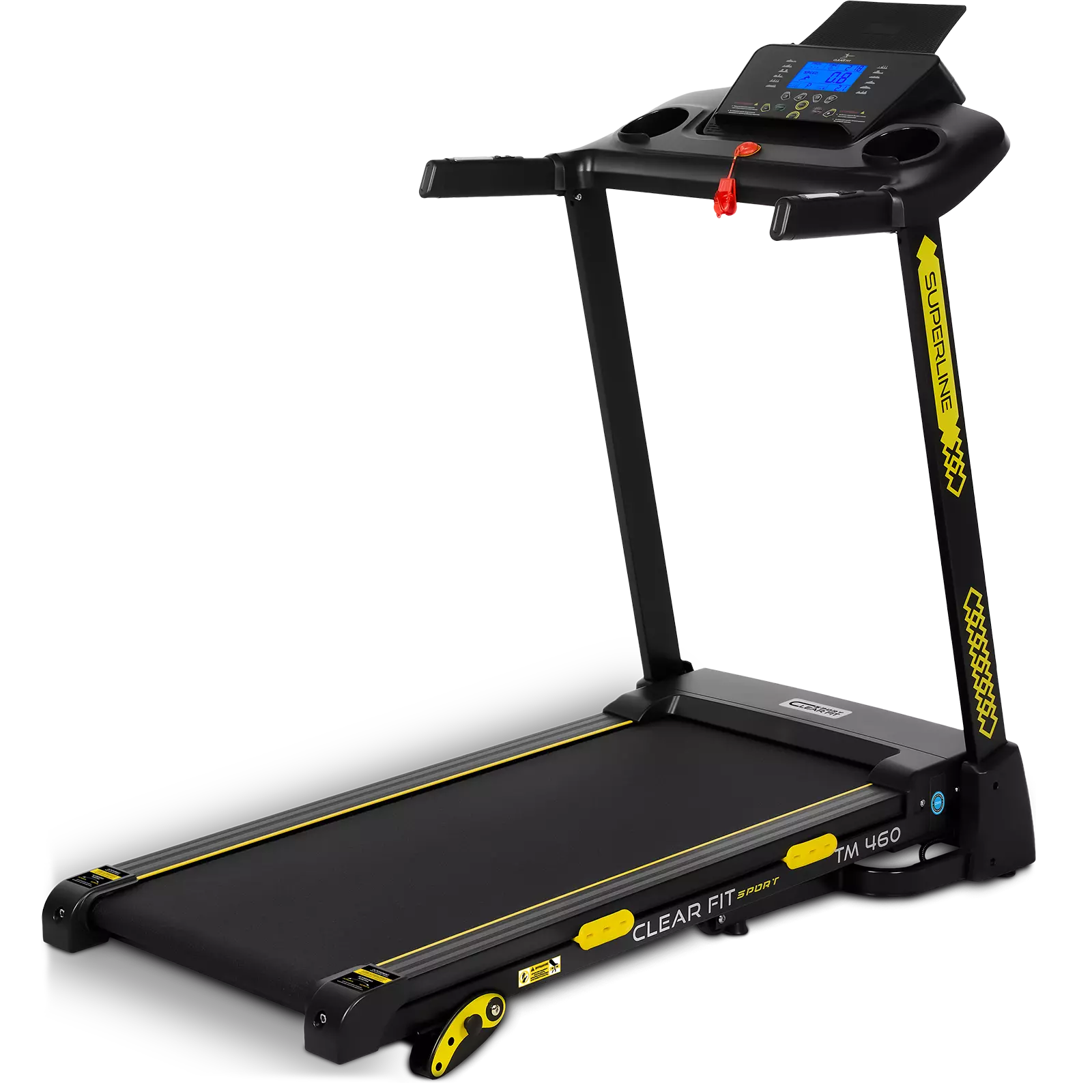 Компактная и мощная беговая дорожка Clear Fit Sport TM 460 серии SuperLine предназначена для регулярных домашних тренировок. Электрическая беговая дорожка отличается просторным беговым полотном 460 х 1090 мм, это максимальный комфорт для любой комплекции при ходьбе и беге в диапазоне скорости 0,8 – 14 км/ч. Надежный, практически бесшумный двигатель 3.5 л.с. обеспечивает плавное изменение скорости и стабильное движение полотна. Прочная дека и усиленная конструкция рассчитаны для пользователей до 135 кг. Двойная система амортизации: StandartSoft™ – 8 эластомеров по периметру и ExtentCushion™ – 4 вытянутые подушки в центральной зоне, обеспечивают защиту от ударной нагрузки для суставов и позвоночника, подходит для всех возрастных групп пользователей. Регулировка угла наклона бегового полотна по технологии SlightChange осуществляется легко и безопасно, фиксируется в 3-х положениях. Газовый доводчик EasyDecline™ облегчает процесс складывания, обеспечивает плавное и мягкое опускание бегового полотна без усилий и шума, все для компактного хранения и простого перемещения тренажера. Продуманная эргономика модели, наличие полки для гаджетов и подстаканников для бутылки воды, интуитивное управление, крупная и русифицированная индикация позволяют легко начать регулярные домашние занятия спортом.