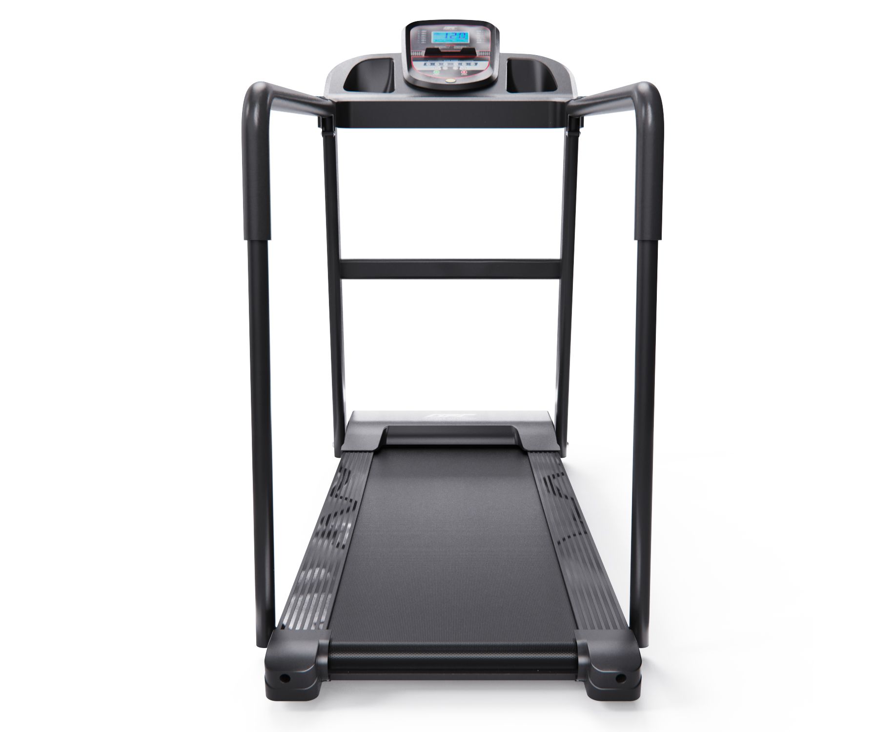 Беговая дорожка оснащена монохромным LCD-дисплеем, а для разнообразия тренировок предусмотрено 12 предустановленных программ, что позволяет вам настроить занятия под свои цели. Измерение пульса осуществляется с помощью сенсорных датчиков на поручнях.