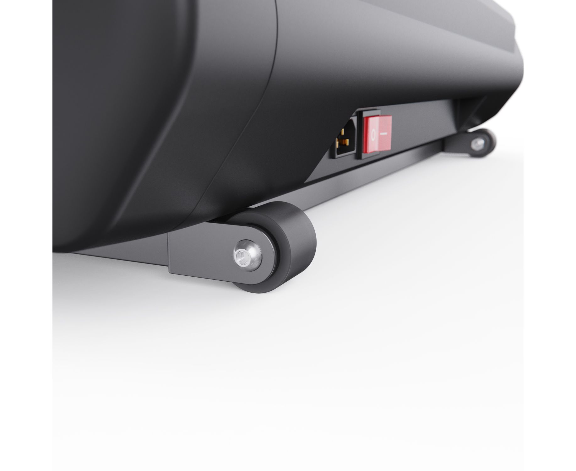 Беговая дорожка для дома оснащена всем необходимым для комфортных тренировок: держатель для бутылки, подставка под планшет, транспортировочные ролики для удобного перемещения. Управление скоростью и углом наклона дублируется на поручнях, а встроенные сенсорные датчики позволяют отслеживать пульс во время занятий.