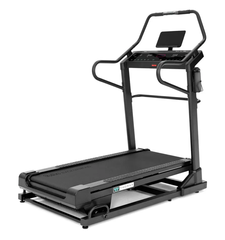 Беговая дорожка Aura Labs™ Thorax - шведская компания Dynamatica™ представляет новейший и один из самых эффективных на сегодняшний день фитнес продуктов – премиальную электрическую беговую дорожку Aura Labs™ Thorax. Принципиальное отличие этого тренажера от подавляющего большинства других дорожек состоит в просто невероятном угле положительного наклона, на максимуме это 25 градусов и 40 уровней подъема. Кроме того, есть здесь и 3 уровня отрицательного угла наклона с максимальным значением -1,8 градуса. Уникальное сочетание в одном тренажере сверхвысоких и отрицательных углов наклона обеспечивает взрывной рост эффективности тренировочного процесса.
