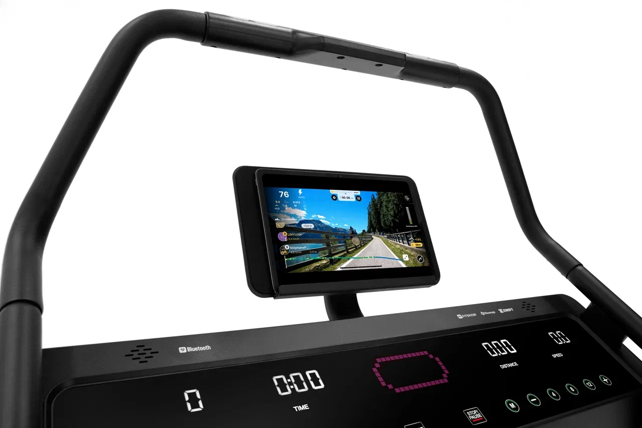 Дорожка интегрируется со сторонними мобильными приложениями. Первое приложение Fitshow – русифицированное мобильное приложение с широким программным функционалом. К возможностям приложения относится: более 100 программных профилей и полноценных тренировочных комплексов, возможность создания собственного программного профиля, развернутая статистика тренировок, более 30 видео профилей (аналог технологии Kinomap), более 60 3D профилей (аналог технологии Zwift), маршруты на основе Google Maps, подсчет калорий и синхронизация со Strava. В приложении Kinomap собрано более 40 тысяч реальных видео трасс со всего мира. Можно найти и пробежаться почти по всем известным мировым локациям – от оживленного Центрального парка Нью-Йорка и ночного дождливого Киото до альпийских троп и Великой Китайской Стены. ZWIFT – многопользовательский 3D онлайн симулятор велосипеда или бега. Участвуйте в виртуальных тренировках вместе с другими пользователями, достигайте результатов и займите свое место в общемировых рейтингах. Это действительно классное приложение с невероятным уровнем визуализации и погружения.