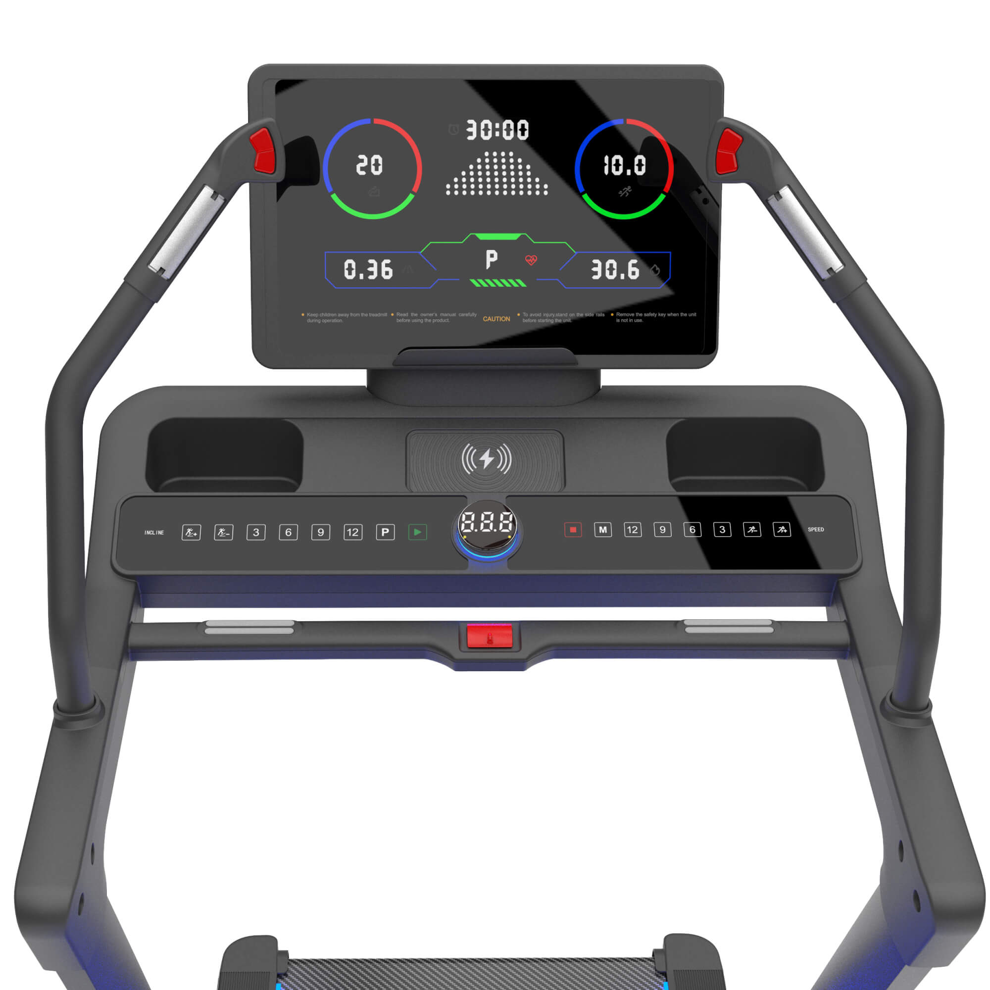 Спортивный кардио тренажер синхронизируется с приложением FitShow - более 100 программных профилей и полноценных тренировочных комплексов, возможность создания собственного программного профиля, развернутая статистика тренировок, более 30 видео профилей, более 60 профилей, маршруты, подсчет калорий. Предусмотрена 2 отделения для бутылок или для мелочей. Для активных пользователей смартфонов и планшетов предусмотрена встроенная беспроводная зарядка, позволяющая заряжать гаджет прямо во время тренировки (Qi V1.2 5Вт).