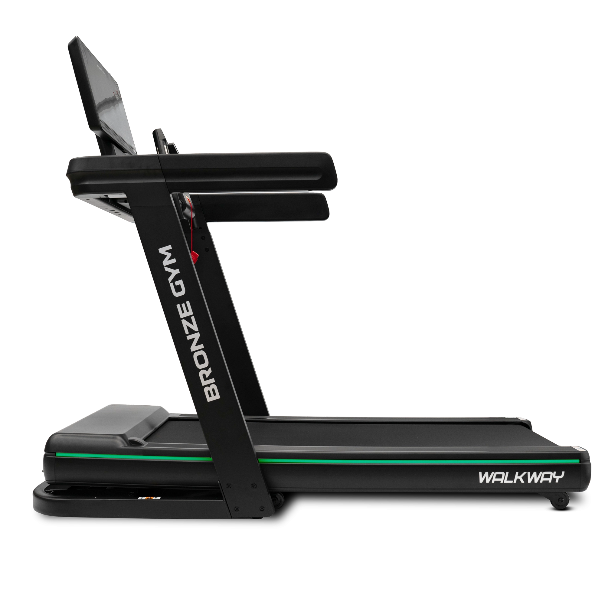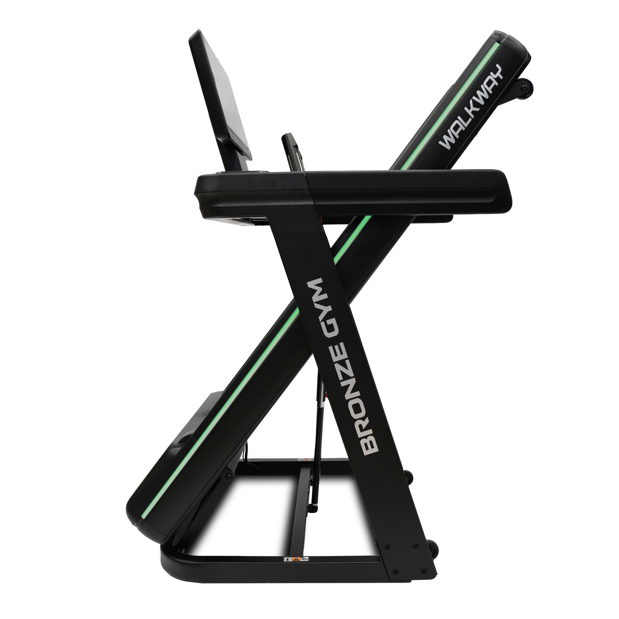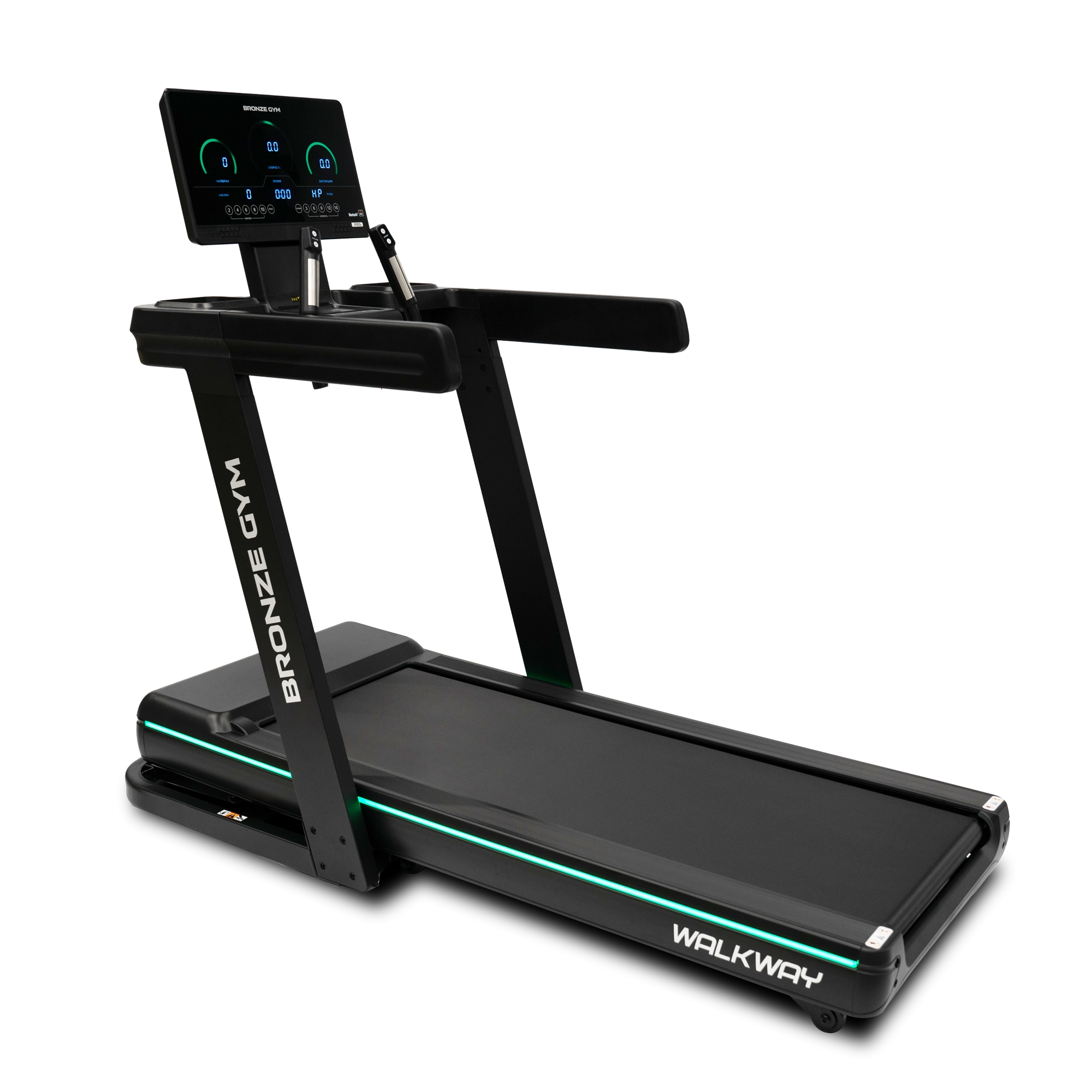 Встречайте складная коммерческая беговая дорожка BRONZE GYM WALKWAY. Первое, что нужно знать, это складной тренажёр. И в классе полноценного коммерческого оборудования такой, согласитесь, встречается нечасто. В сложенном состоянии, как можете видеть, конструкция весьма компактная. Такой вариант станет отличным выбором для уютной студии фитнеса, офисного спортзала, учебного центра, отеля, гостиницы, дома отдыха или санатория. А еще, например, больницы или реабилитационного центра.