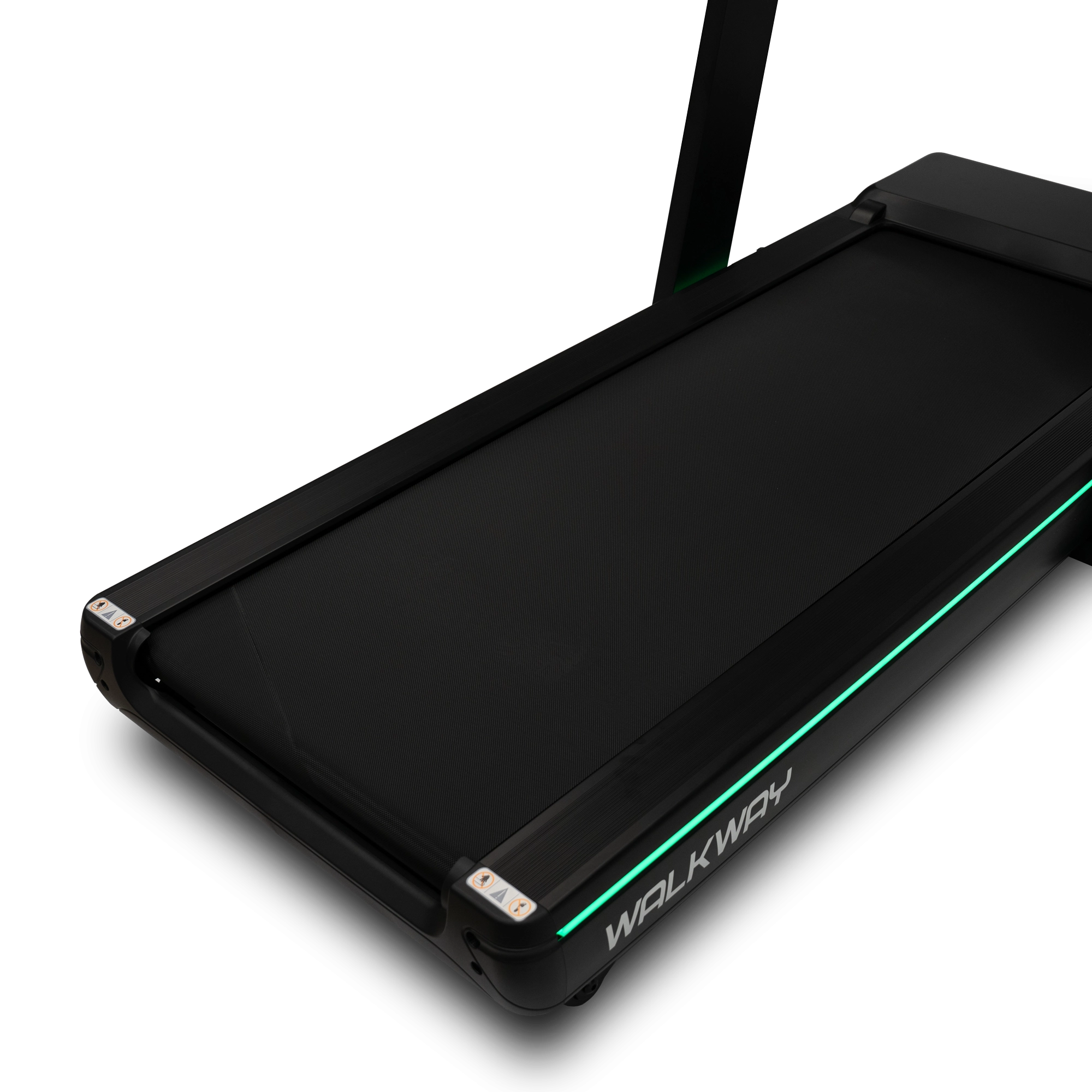 Также это отличный вариант для реабилитационной физиотерапии. Минимальная скорость движения полотна всего 1 км в час, широкие направляющие для ног по бокам и большие крупные поручни для надёжной опоры. Дизайн дополнил светодиодной подсветкой, которая не только создаёт приятный внешний вид, но и имеет практическое применение. Она горит зелёным светом, когда дорожка не работает, и красным, когда включена. С одного взгляда даже с большого расстояния понятно, занят тренажёр или свободен. Элементы управления собраны в одном удобном месте. Кнопки крупные и чёткие, все надписи переведены на русский язык. На консоли с контрастным жидкокристаллическим дисплеем отображается вся необходимая информация о процессе тренировки. Имеется целых 36 тренировочных программ, в том числе 4 ручных режима, 3 пользовательских, 3 пульсозависимых плюс встроенный жироанализатор. Показания пульса можно контролировать с помощью специальных датчиков на поручнях или подключив беспроводной нагрудный кардио датчик. Датчик в комплекте не идёт и приобретается отдельно. К тренажёру через Bluetooth можно подключить смартфон или планшет, разместить на удобной полке и тренироваться в таких популярных фитнес-приложениях, как Kinomap и Zwift. На удобной просторной полке есть два очень вместительных кармана для всяких нужных мелочей — от фляги с водой до полотенца, телефона, ключей или чего-то еще. И, конечно, беспроводная зарядка ваших любимых гаджетов. BRONZE GYM Walkway — это универсальный инструмент для коммерческого применения в широчайших рамках и условиях.