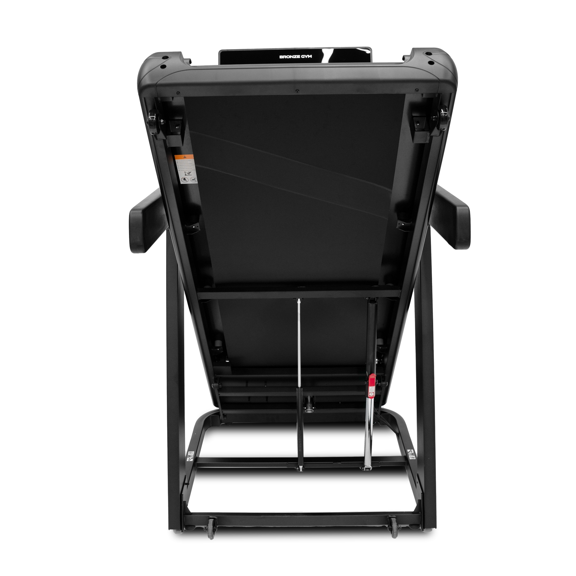 И совместить в одной конструкции складную систему хранения и надежность коммерческого оборудования — задача весьма непростая, но вполне доступная инженерам компании BRONZE GYM. Несмотря на относительно компактные внешние габариты, это именно профессиональный тренажёр с полным набором всех самых передовых функций, надёжным прочным конструктивом и строгим премиальным дизайном. Дорожка рассчитана на максимальный вес пользователя в солидные 150 кг и сама по себе весит внушительные 120, что является следствием приличного запаса прочности и надёжности.