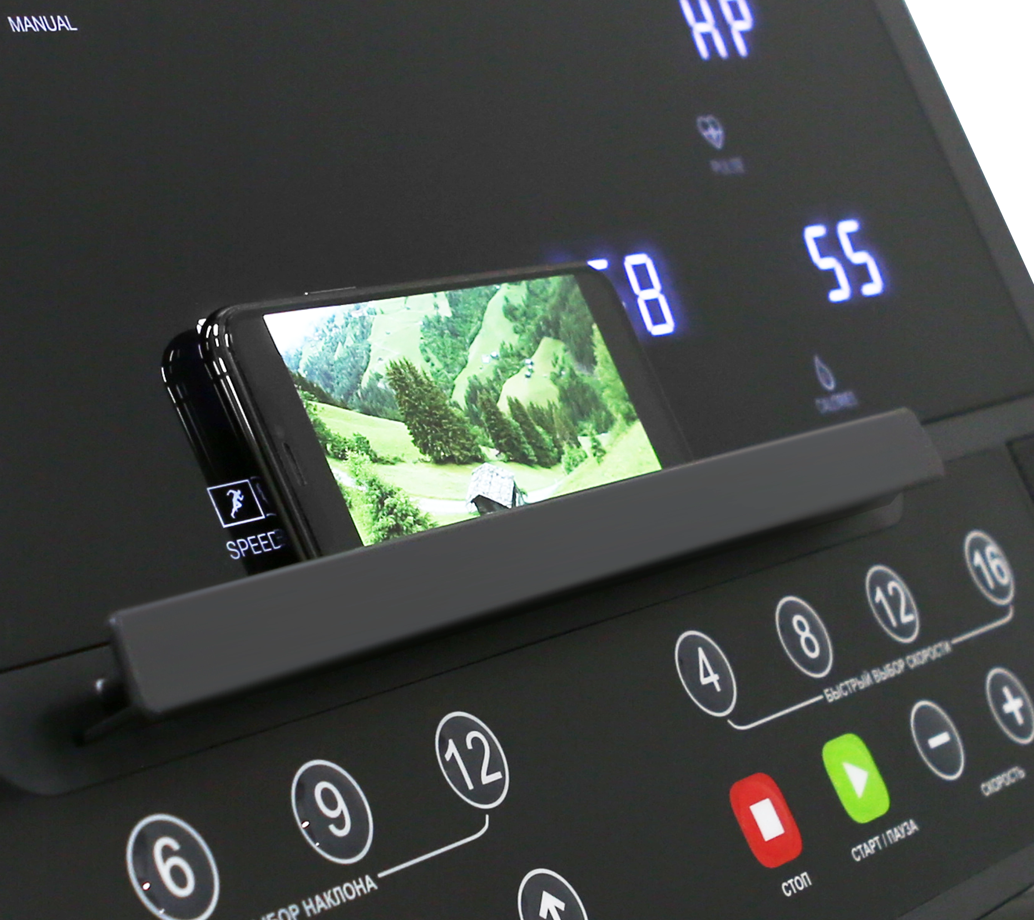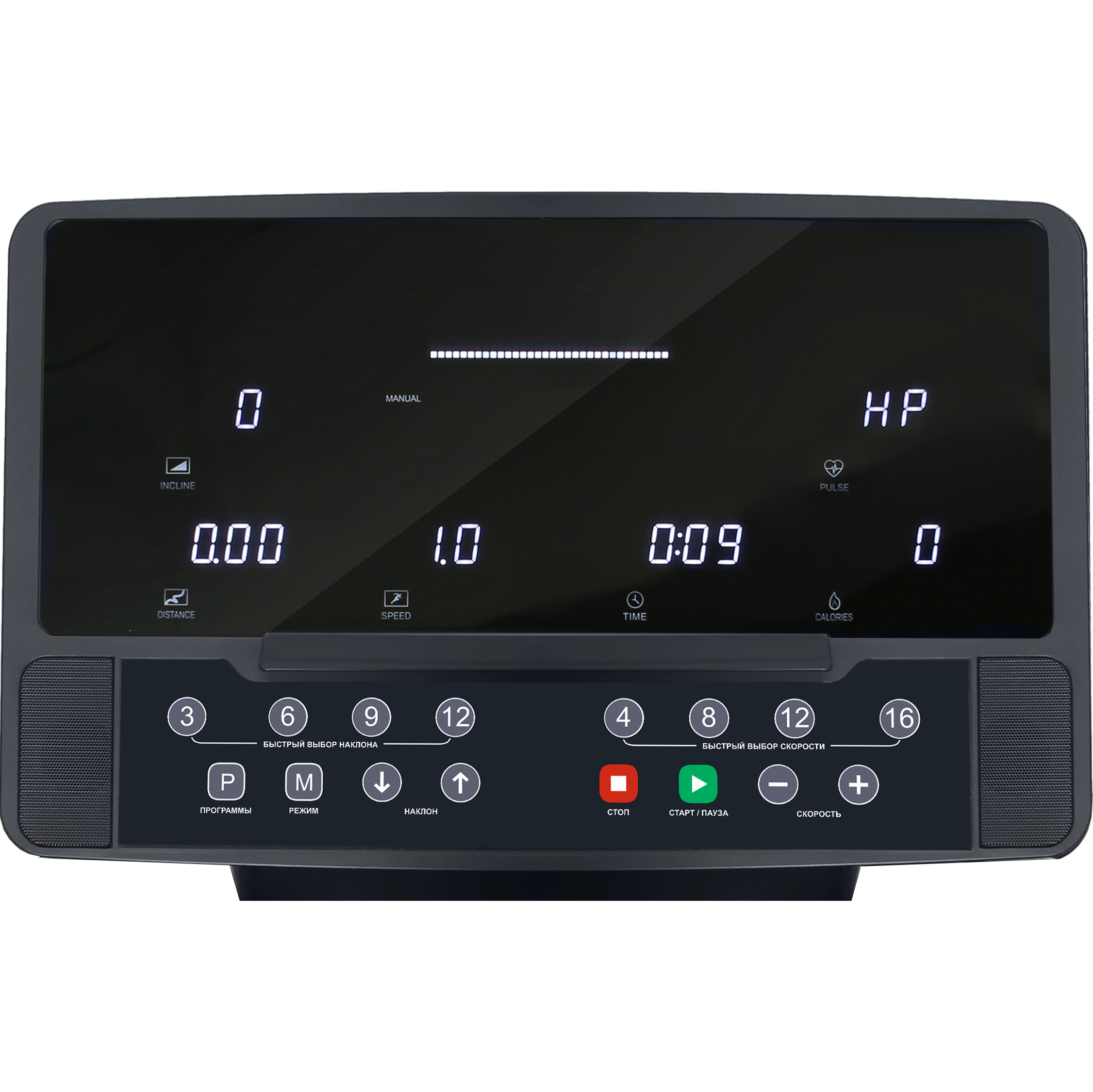 Интуитивно понятные, информативные LED дисплеи позволяют легко и удобно управлять беговой дорожкой, как начинающим, так и подготовленным пользователям. На мониторах отображаются следующие данные: программный профиль, время, скорость, дистанция, калории, пульс, угол наклона. Все клавиши и дисплеи оснащены белой подсветкой, а надписи русифицированы. В число самих программ входят 44 различных режима. Помимо предустановленных программ, можно воспользоваться самостоятельно регулируемым ручным режимом, а также создать собственную программу в одном из 3-х пользовательских программ. 3 пульсозависимые программы отвечают за тренировку тех пользователей, которым важно контролировать верхние пределы частоты сердечного ритма.