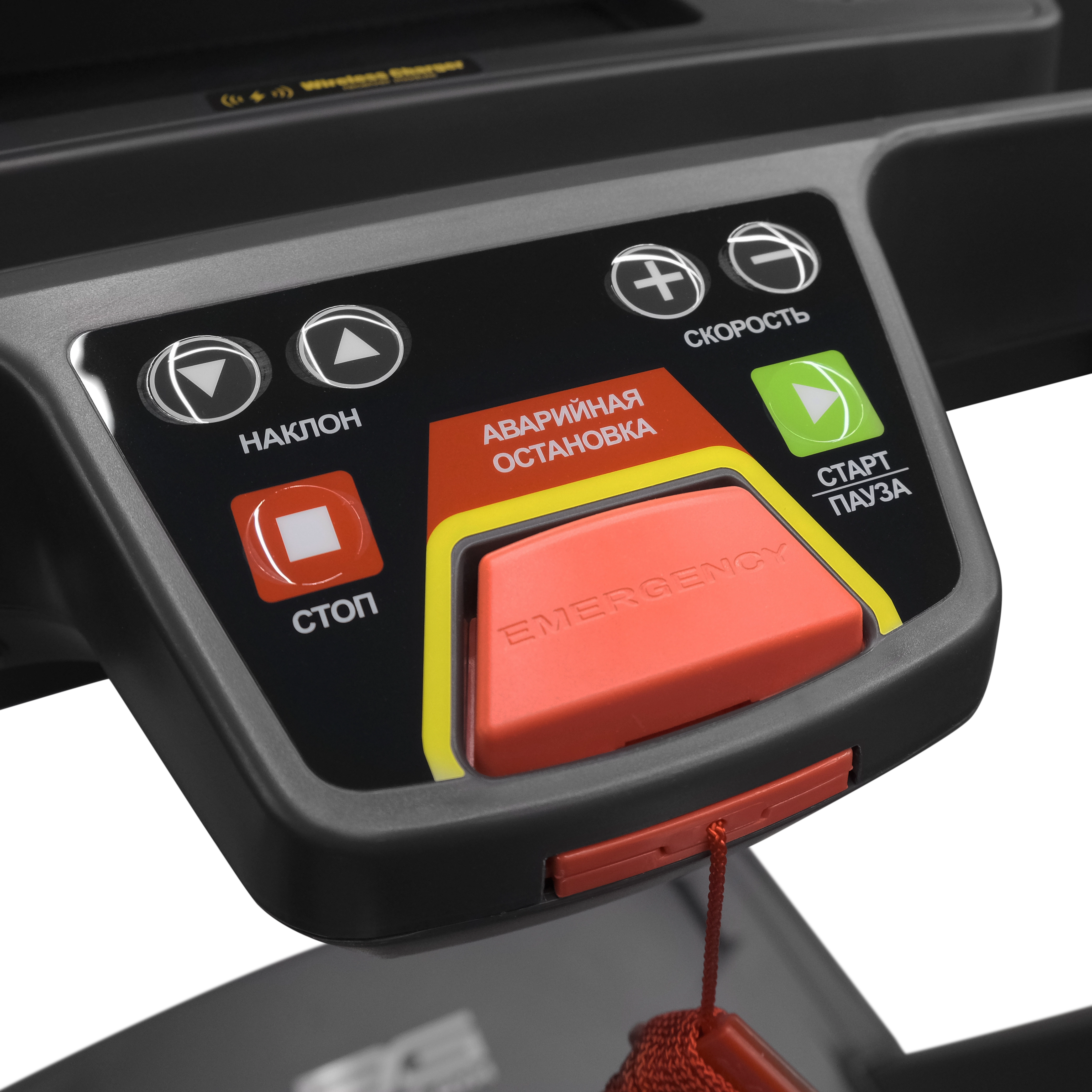 Беговая дорожка идеально подойдет для любителей высокоэффективных тренировок и профессиональных спортсменов. Чтобы удовлетворить самые высокие потребности, под капотом T1000M расположен двигатель с мощностью 6 л.с. (в режиме пиковых нагрузок 8,5 л.с.). Оборудование способно развивать скорость до 25 км/ч, а угол наклона изменяется электрическим способом в 15 положениях. Для улучшения качества тренировочного процесса и его разнообразия на T1000M PRO TURBO NEW установлено ортопедическое полотно профессионального класса (толщина 2,5 мм) с огромной беговой зоной размером 162*60 см. Для сокращения нагрузки на суставы дорожка оснащена амортизационной системой на базе 4 эластомеров и подушек, расположенных по периметру полотна.