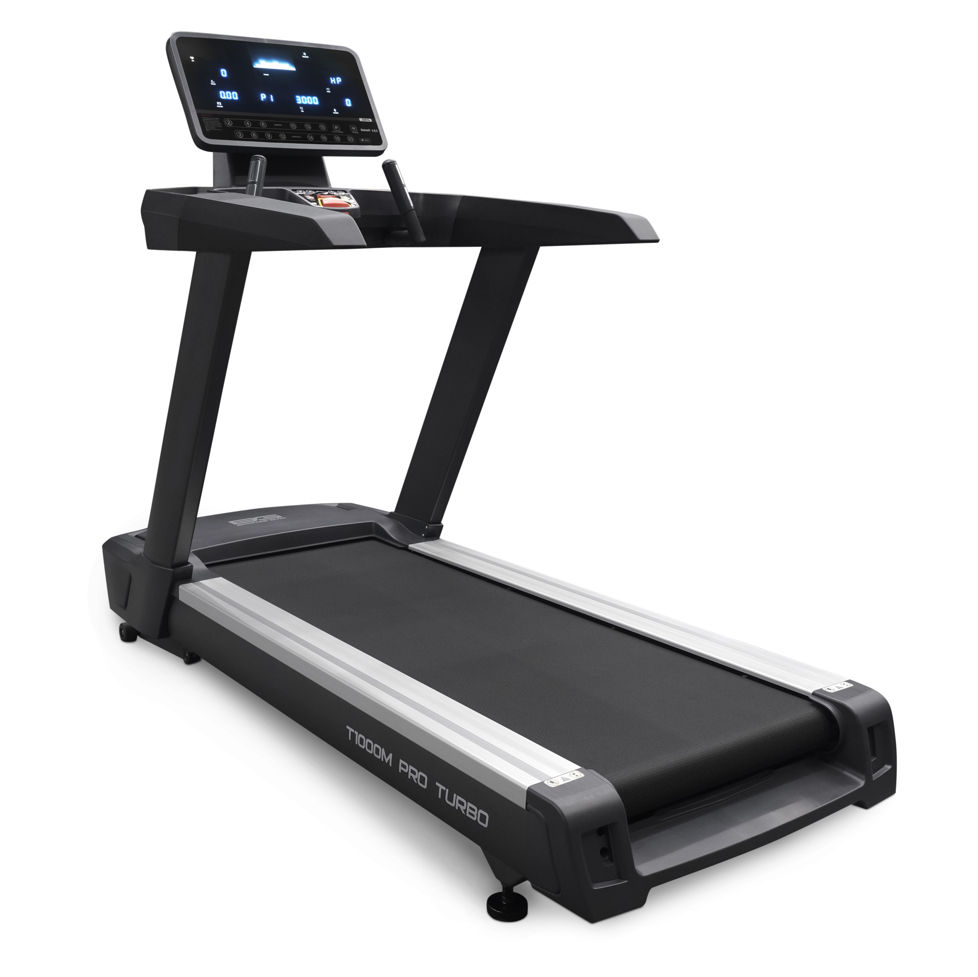 Коллекция 1000-й серии кардио тренажеров от немецкого бренда Bronze Gym отличается классическим строгим дизайном, обладает превосходными биомеханическими опциями и способна выдерживать многочасовые бесперебойные нагрузки. T1000M PRO TURBO NEW – это профессиональная беговая дорожка, разработанная специально для фитнес-клубов с большим потоком клиентов. В основе конструкции – высокопрочная рама с двухслойной покраской. Вес изделия составляет 198 кг и способен выдерживать пользователей до 180 кг.