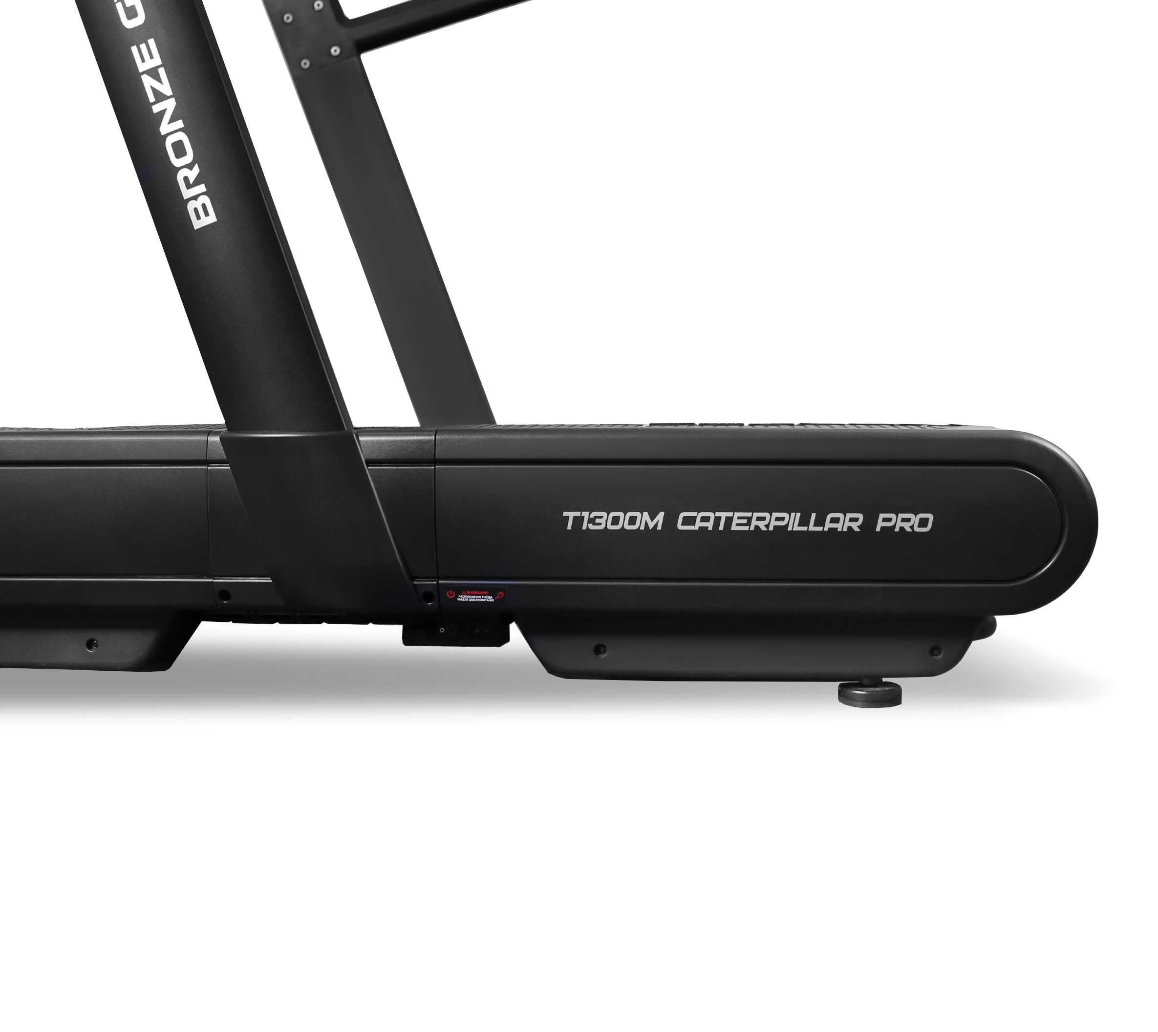 T1300M CATERPILLAR PRO – флагманская профессиональная беговая дорожка от немецкого бренда Bronze Gym. Предназначена для использования в коммерческих фитнес-клубах с большим потоком клиентов, а также для серьезных спортивных подготовок профессиональных спортсменов и спортивных клубов. Конструкция модели рассчитана на тяжелые коммерческие условия эксплуатации в режиме 24/7. Беговая дорожка тяжелая, вес оборудования составляет 191 кг и способна выдерживать вес пользователя до 180 кг.