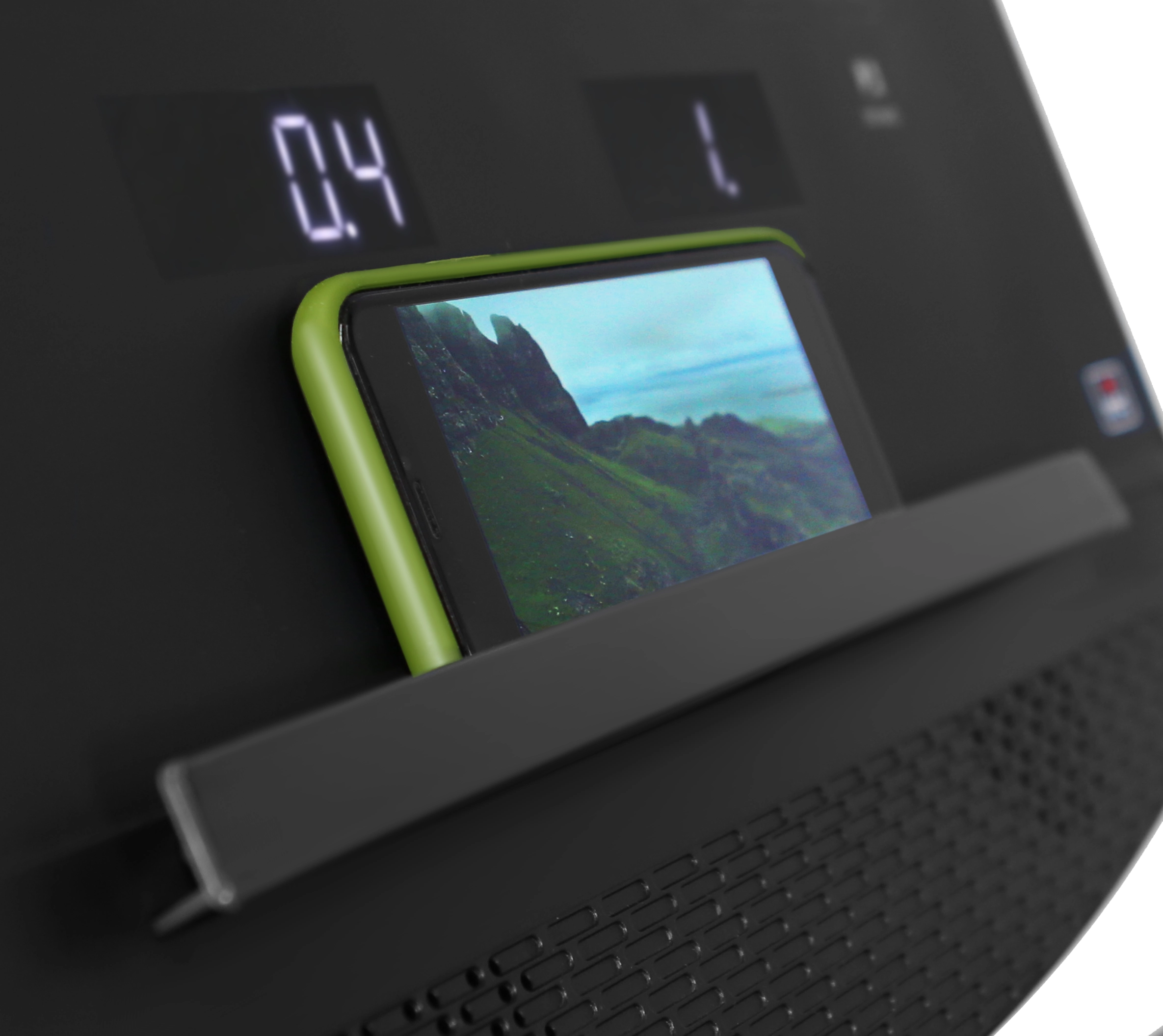 В комплекте с беговой дорожкой идет и нагрудный кардиодатчик, который синхронизируется с встроенным приемником, работающим по протоколу Bluetooth Smart 4.0. Приятной опцией является подставка под телефон или планшет, а также держатель для бутылочки с водой и место для личных вещей.