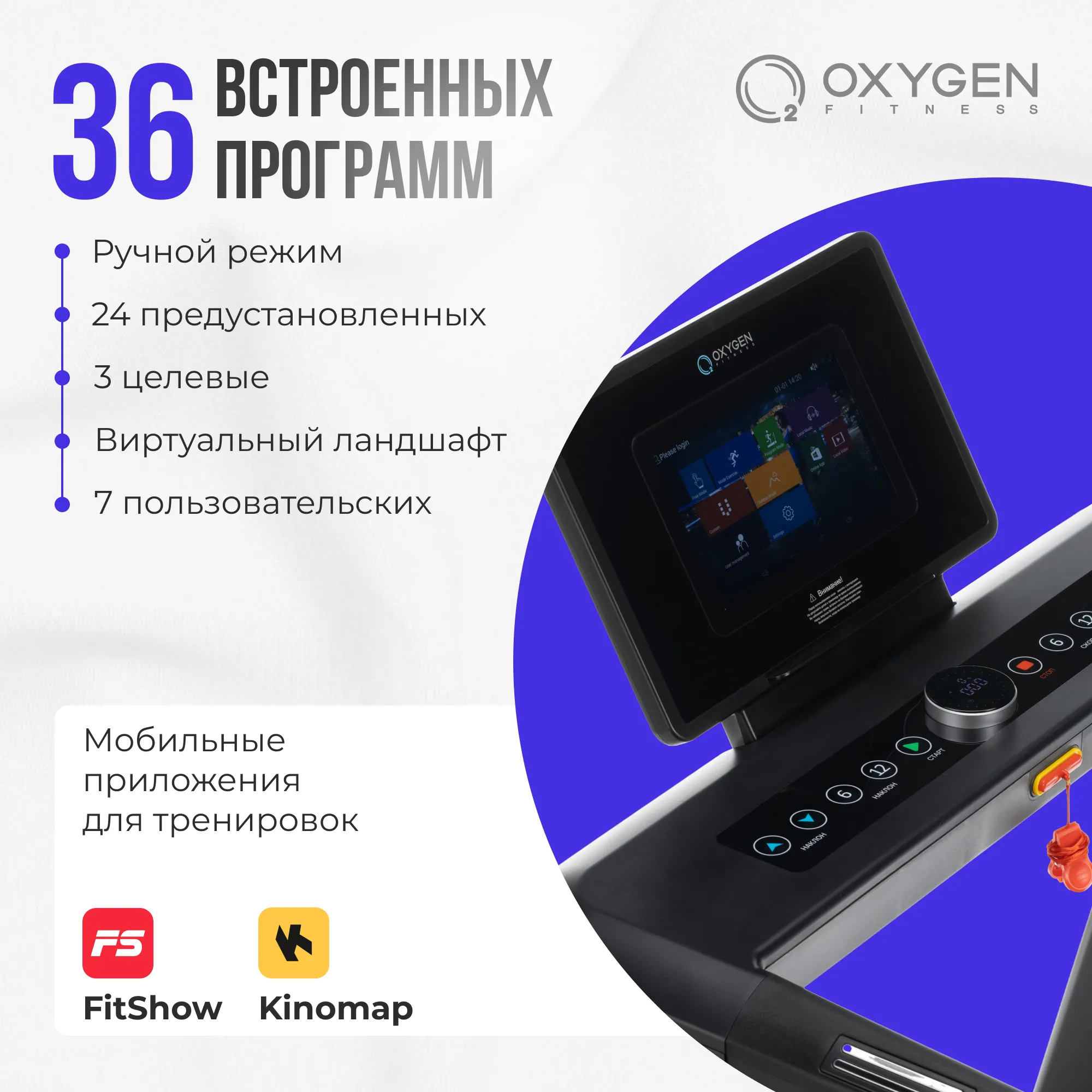 Консоль модели OXYGEN FITNESS EMERALD TFT 10 представлена 10-дюймовым TFT дисплеем, который ярко и четко отображает основные параметры тренировки. На экране вы увидите время, скорость, пройденное расстояние, уровень наклона, количество сожженных калорий, пульс и выбранную программу. Такое разнообразие данных помогает контролировать тренировку и следить за своими достижениями. В консоли доступно целых 36 программ тренировок, включая ручной режим, 24 встроенные программы, 3 целевых программы, 7 пользовательских программ и виртуальный ландшафт. С Bluetooth-соединением можно использовать тренировочные мобильные приложения, такие как Fitshow™ и Kinomap™. Это открывает доступ к синхронизации данных, интерактивным тренировкам и другим полезным функциям. Беговая дорожка OXYGEN FITNESS EMERALD TFT 10 - это не просто инструмент для тренировок, а источник мотивации и заботы о вашем здоровье. С нашей 5-летней гарантией вы получаете уверенность в надежности и высоком качестве этой дорожки. Не откладывайте заботу о себе на потом - начните прямо сейчас и достигните новых высот в своих тренировках!