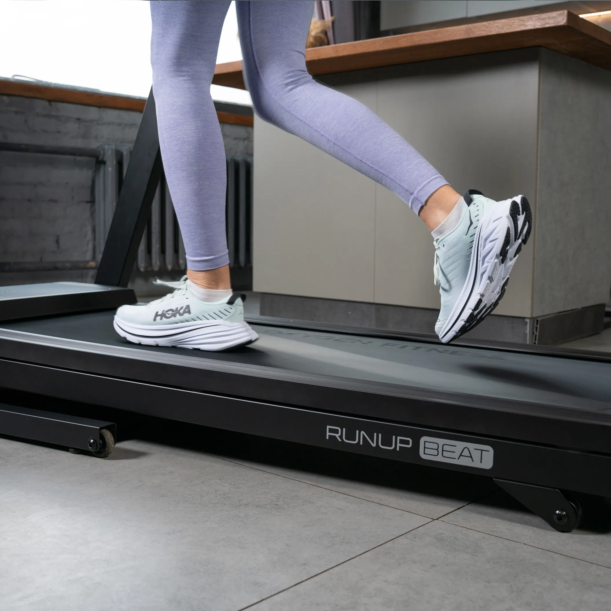 Серия беговых дорожек OXYGEN FITNESS RUNUP сочетает в себе простоту, функциональность и комфорт. Тренажеры отличаются современным строгим дизайном, выполненным в элегантной цветовой гамме. Кроме аккуратно состыкованных поверхностей и гармоничного баланса металлических и пластиковых материалов, в серии RUNUP нет ничего лишнего. Моторный отсек является продолжением рамы деки, находится с ней на одном уровне и выглядит как единое целое. Такое решение придает не только эстетическую законченность форм, но и является одним из важных факторов, позволяющим уменьшить размер тренажера. Система складывания позволяет сэкономить максимум пространства в помещении. Тренажер легко перемещается в нужное место за счет 2-ух транспортировочных роликов. Значительно облегчает складывание и раскладывание беговой дорожки гидравлическая система easyFOLD™. Тренажеры предварительно собраны на заводе, термин «быстрая сборка» тут очень к месту, так как для приведения в рабочее состояние дорожки, необходимо закрутить всего несколько болтов. Особопрочная рама в сочетании с парафинированной декой 15 мм и наличием многослойного полотна (толщина 1.4 мм) позволяет оборудованию выдерживать вес до 120 кг. Размер бегового полотна составляет 130*45 см. Более того, в BEAT есть даже автоматическая регулировка угла наклона от 0 до 12% - за счет чего значительно увеличивается вариативность тренировок. Формат закрытого типа рамы существенно сократит попадание пыли и грязи во внутренние части беговой дорожки.
