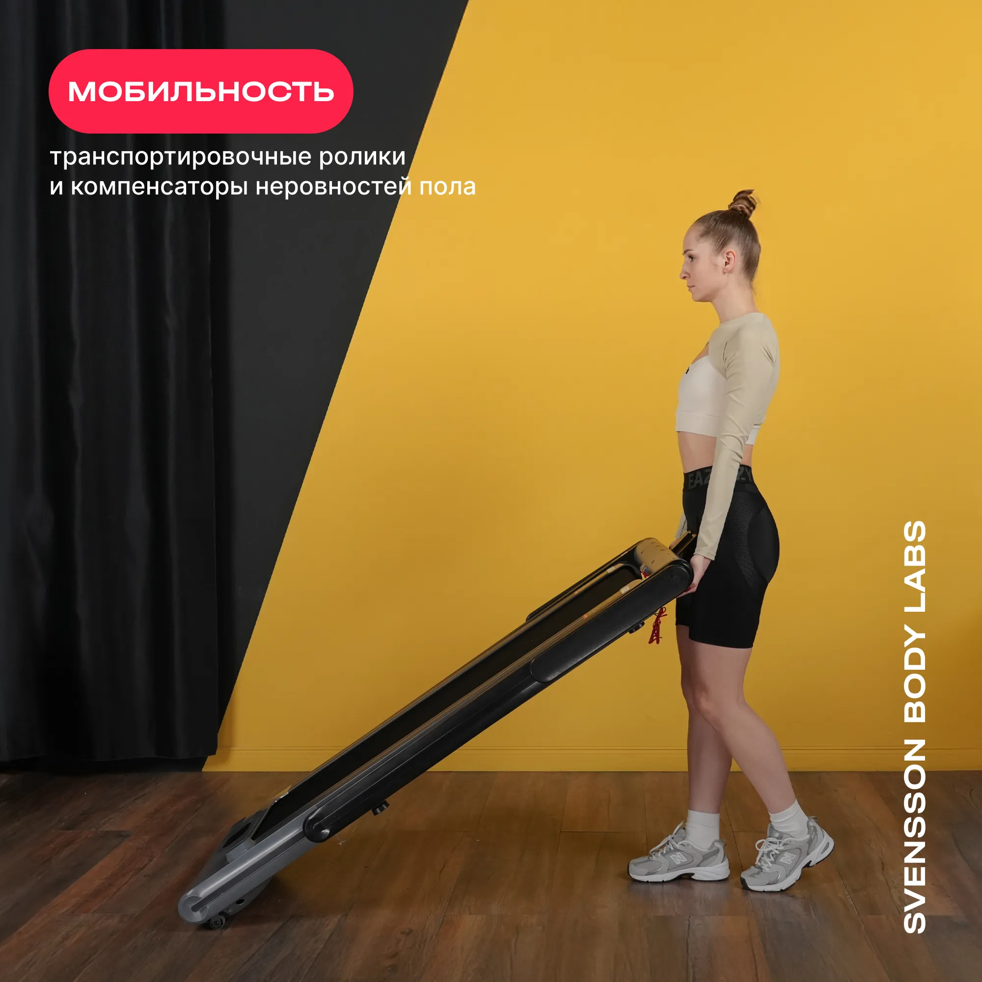 • компактное складывание: легкая складная конструкция и транспортировочные ролики делают хранение и перемещение удобными (в сложенном виде высота всего 13,1 см).