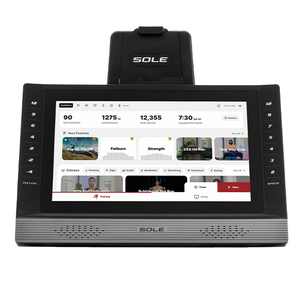 Добавьте к этому сотни бесплатных онлайн-уроков фитнеса SOLE+ через консоль и приложение, и у вас будет самый полный пакет услуг по беговой дорожке из всех!
