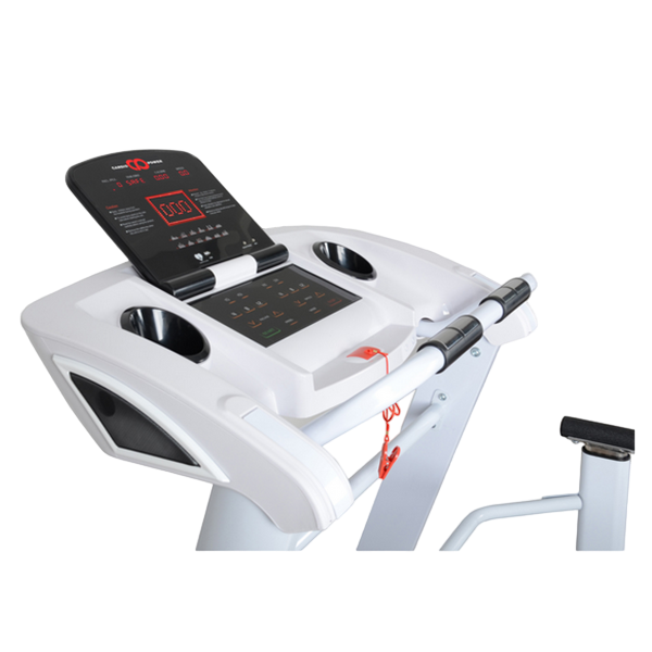 Мотор переменного тока AC обеспечивает регулировку скорости в диапазоне от 0,2 км/ч до 14 км/ч с шагом изменения 0,1 км/ч. Информативный LED дисплей отображает все данные тренировки. Контроль пульса осуществляется с помощью контактных сенсоров и беспроводного считывания пульса с кардиопояса.